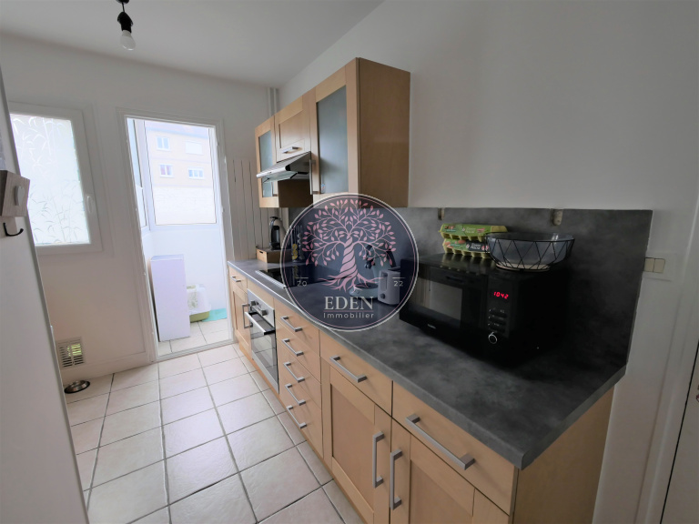 Appartement proche centre-ville et GARE de DREUX comprenant : Entrée, cuisine, salon-séjour (possibilité de créer une 3ème chambre), dégagement, 2 chambres, salle d'eau, wc, Balcon.