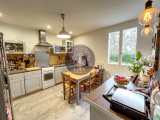 Entrée, séjour double avec poële à bois, cuisine aménagée et équipée, dégagements, trois chambres, dressing, salle d'eau avec wc.