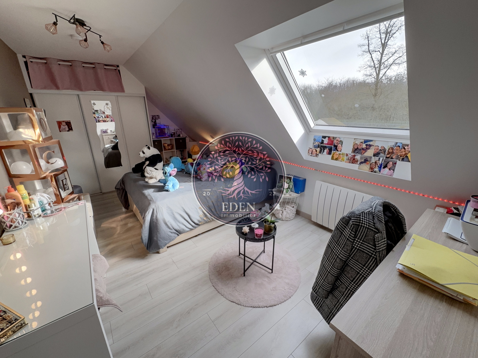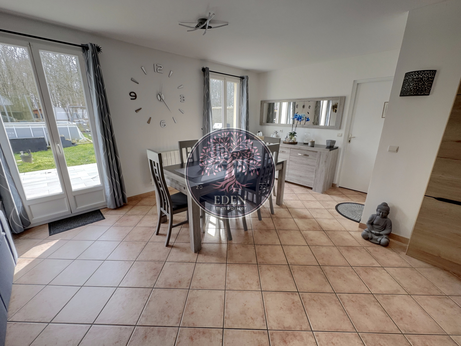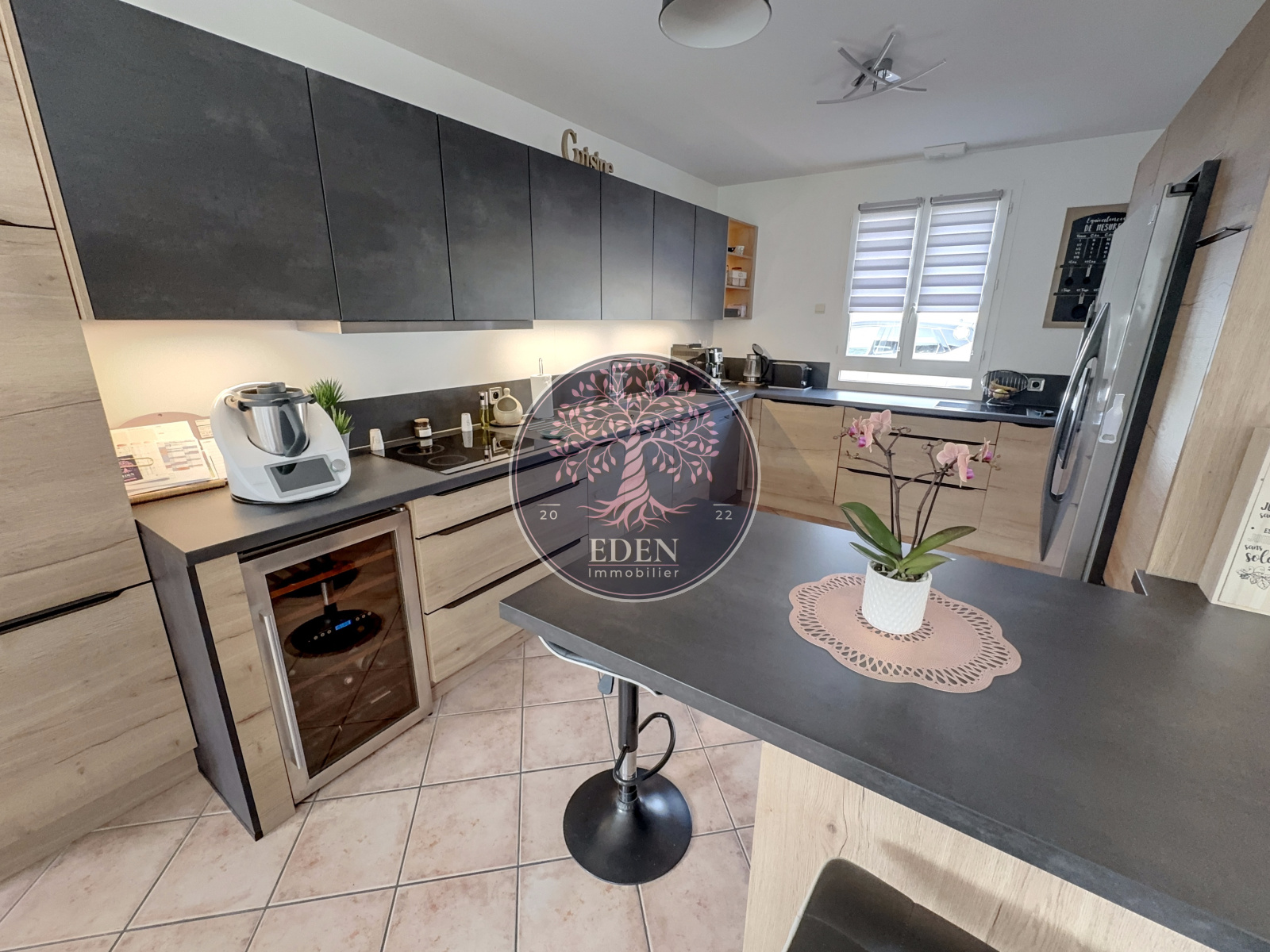 L'équipe Eden Immobilier vous présente cette maison familiale de 2007 édifiée sur 1 200m² de terrain arboré composée d'une entrée, séjour double lumineux, cuisine aménagée et équipée, cellier buanderie, dégagement desservant deux chambres, un bureau, salle d'eau et WC.