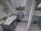 A l'étage, nous retrouvons un palier, trois chambres, salle d'eau et WC.