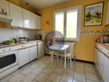 Maison traditionnelle de plain-pied sur sous-sol total comprenant : Une entrée, un lumineux salon-séjour avec accès au balcon, une cuisine indépendante aménagée, un dégagement desservant une salle d'eau, un WC et deux grandes chambres.