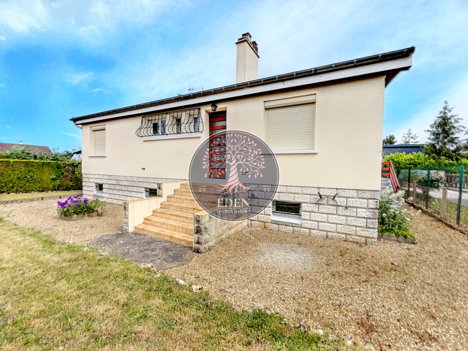 L'équipe Eden Immobilier vous présente cette maison sur sous sol total édifiée sur 550m² de terrain comprenant : entrée, salon/séjour, cuisine aménagée et équipée, un dégagement desservant trois chambres, salle d'eau et WC.