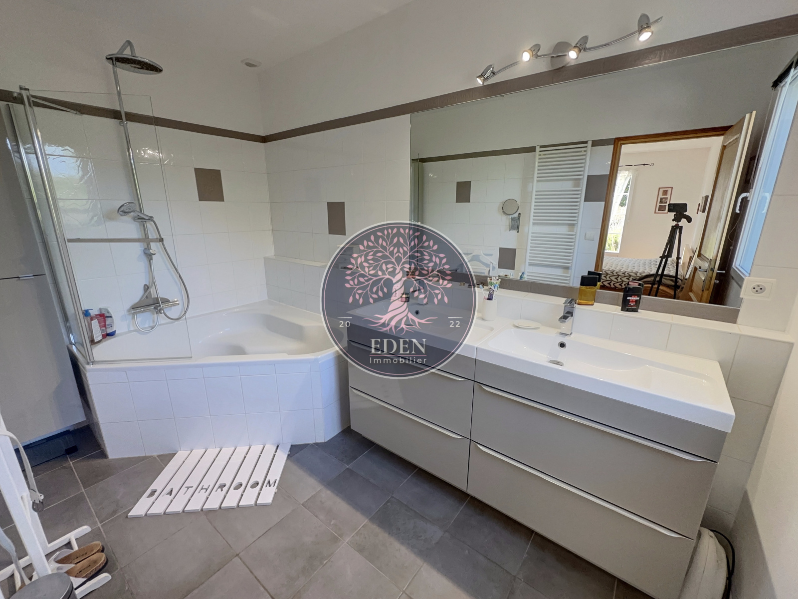 L'équipe Eden Immobilier vous proposse cette maison de 2002 édifiée sur 1 250m² de terrain comprenant : entrée lumineuse avec placards donnant sur un séjour double avec un insert à bois, cuisine aménagée et équipée, une suite parentale avec dressing sur mesures et salle de bains, buanderie et WC. A l'étage, nous retrouvons un palier avec coin bureau desservant trois chambres avec dressing, salle d'eau et WC.