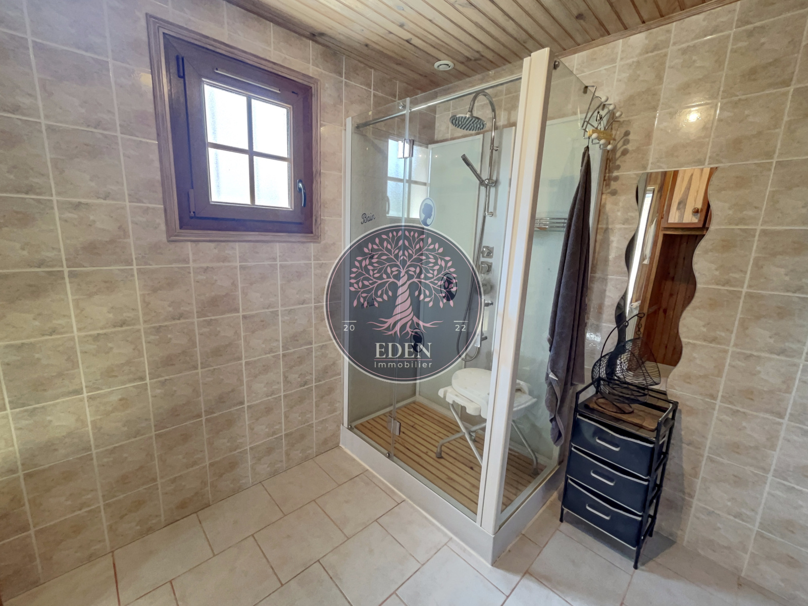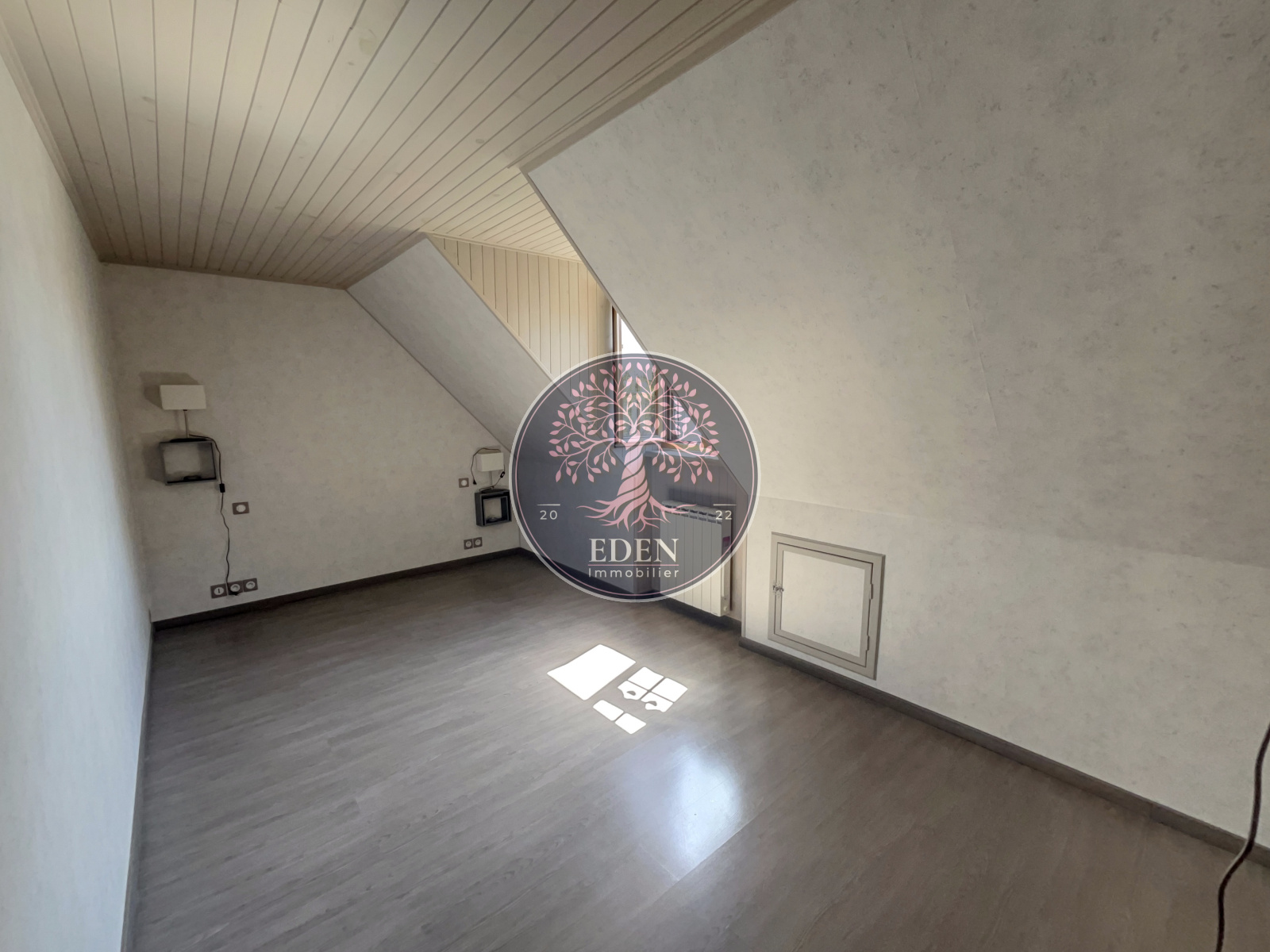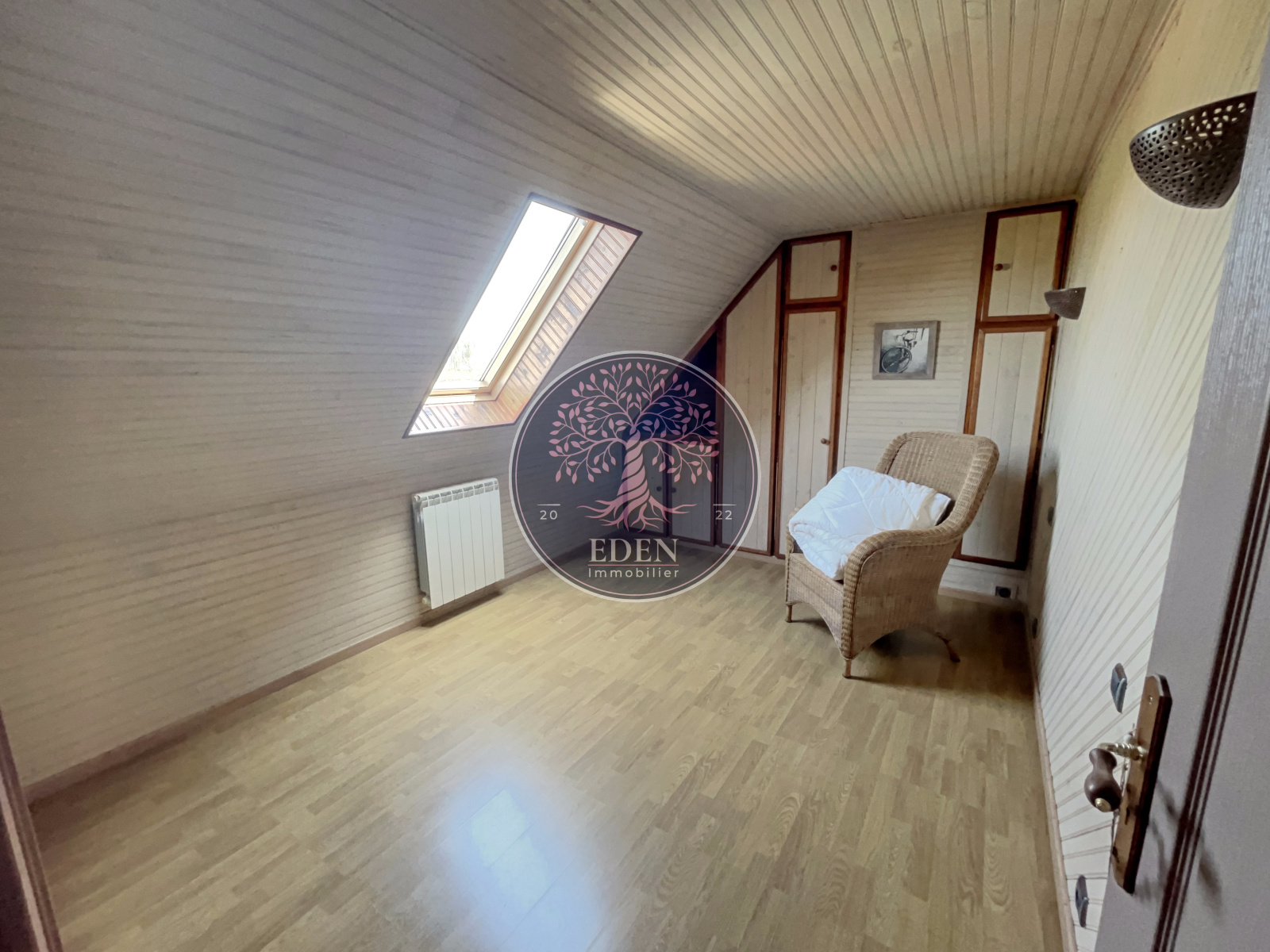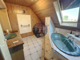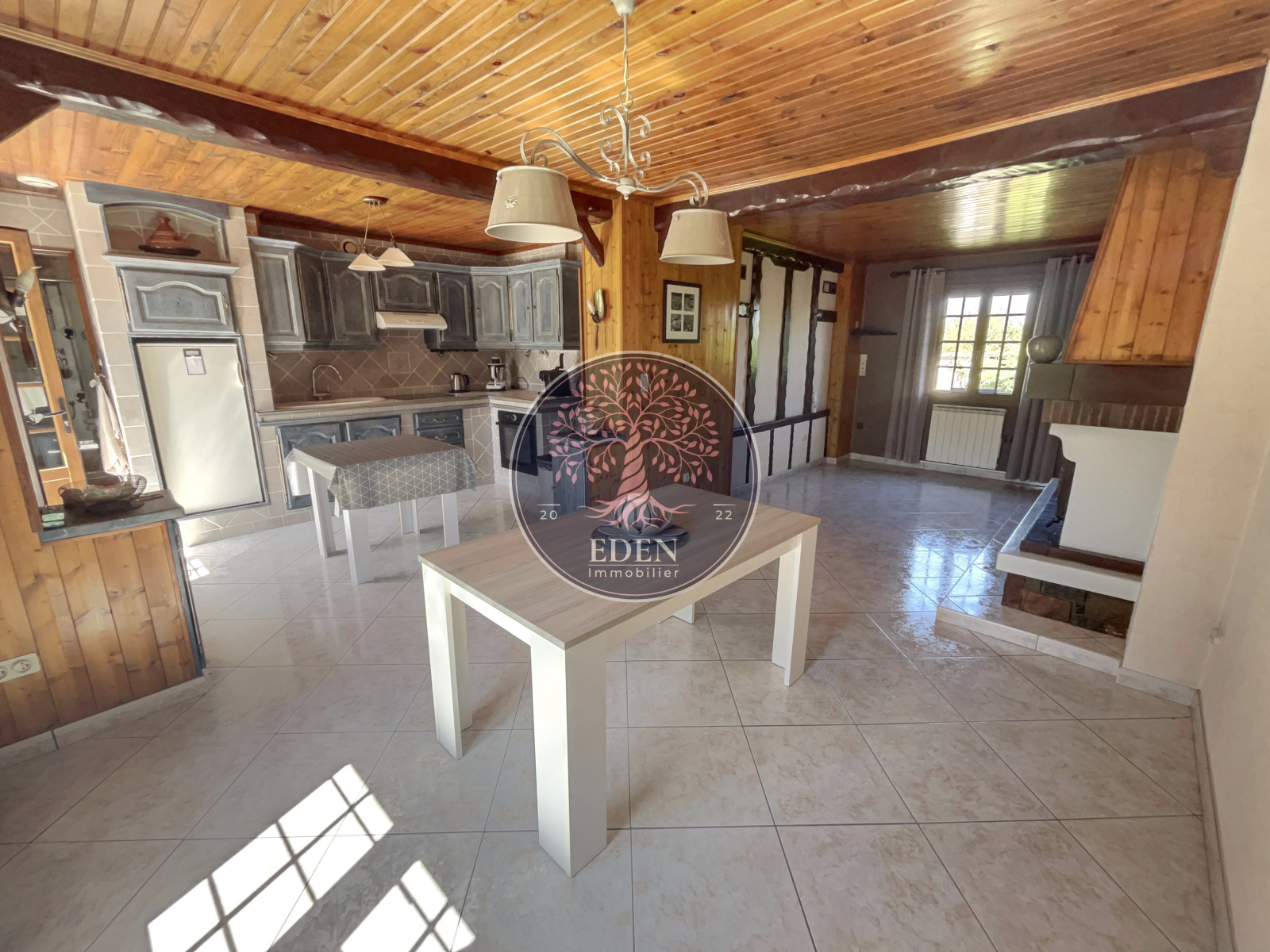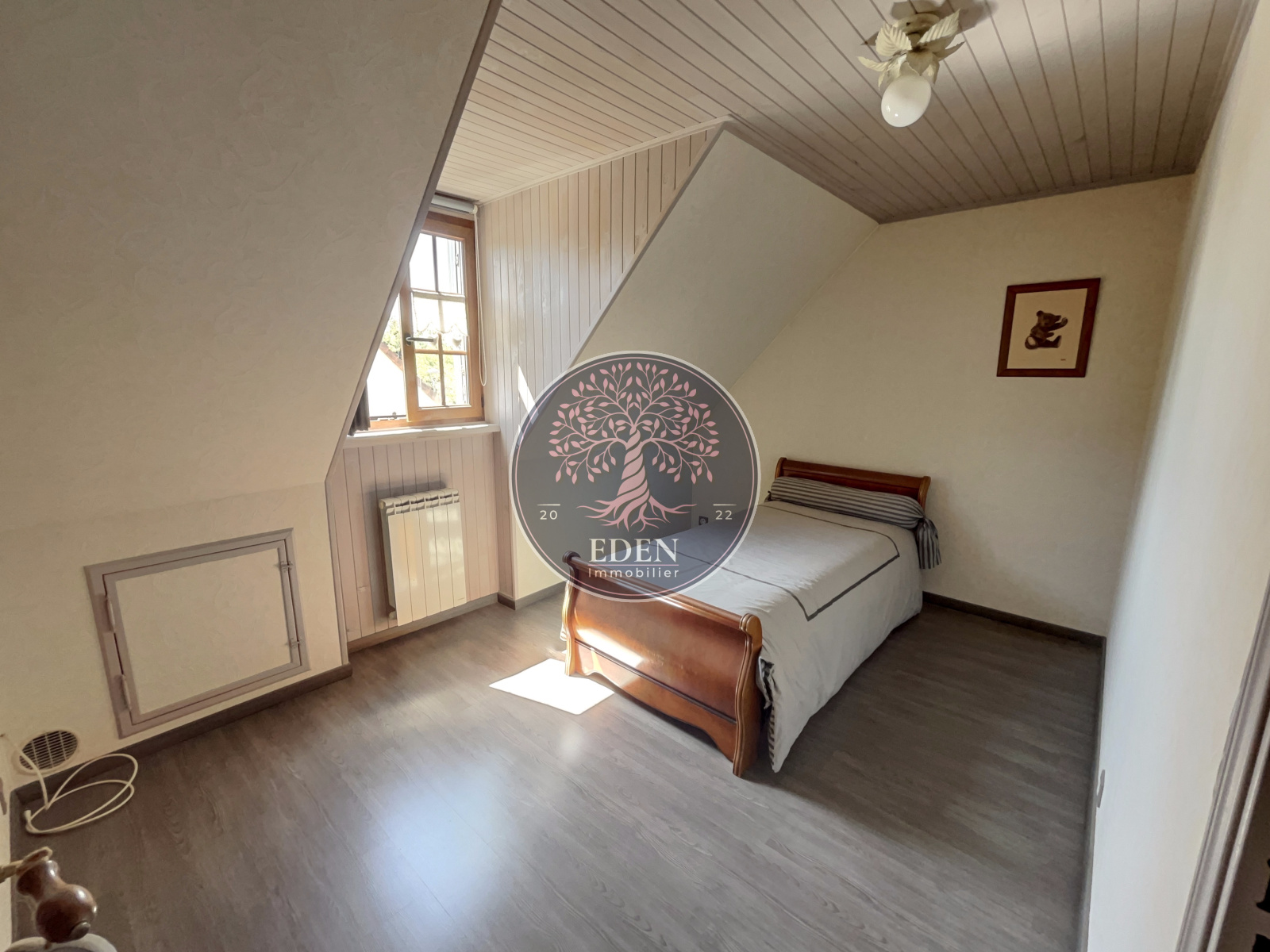 Une maison avec garage attenant, comprenant : Entrée, salon-séjour, cuisine, buanderie avec salle d'eau. A l'étage : Palier, 3 chambres, salle de bains avec wc.