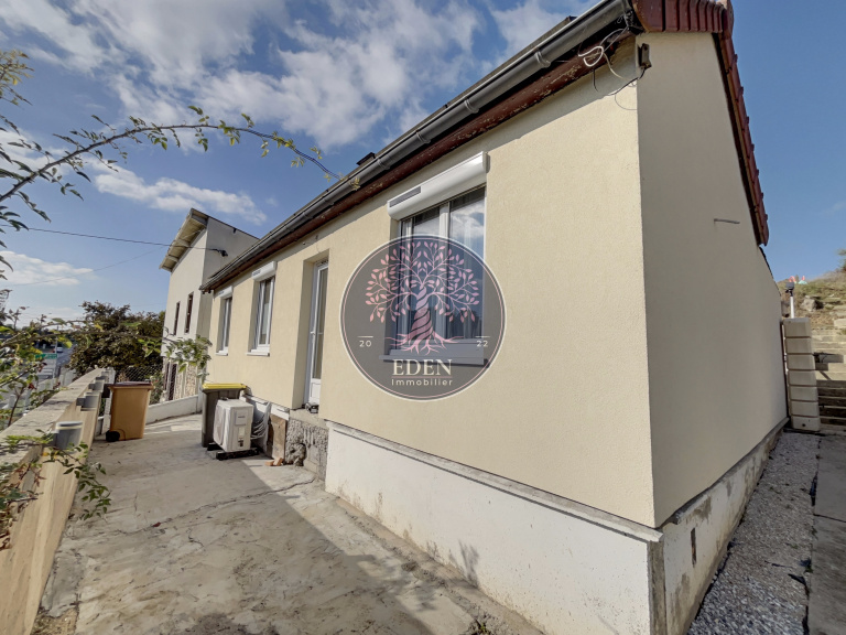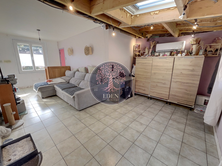 Maison de plain pied édifiée sur environ 290m2 de terrain comprenant : Entrée sur Séjour Double avec Cuisine ouverte, salle de bains, wc, 2 chambres