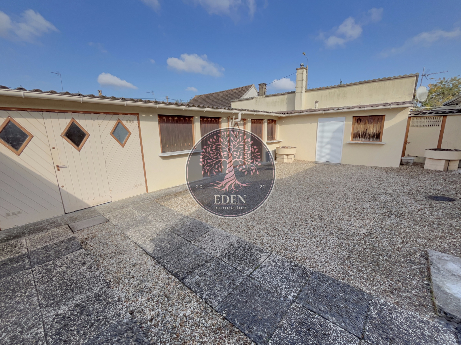 À proximité des écoles et commerces, maison édifiée de plain pied sur 364m2 de terrain comprenant : Entrée sur Séjour, Cuisine, Salle d'eau avec Wc, 2 Chambres. En Dépendances, 2 Chambres dont une avec wc, atelier, garage, cave. Beau Potentiel !