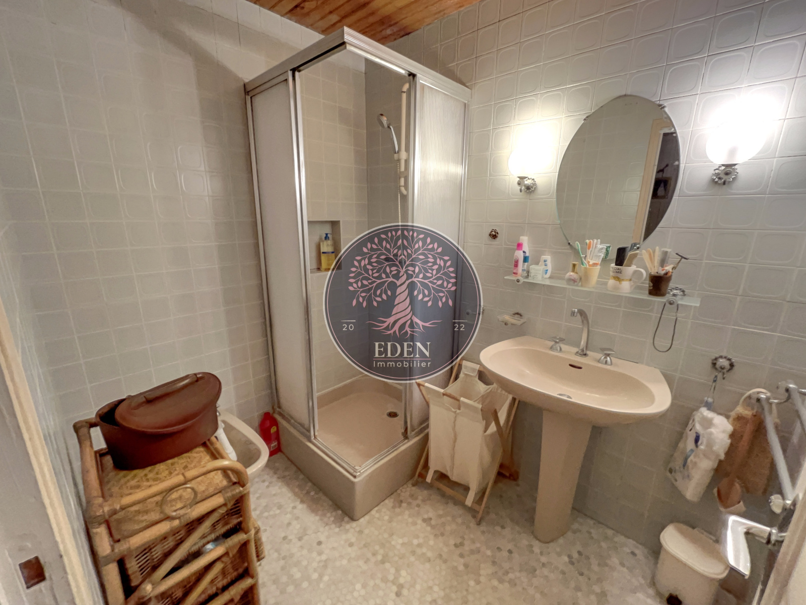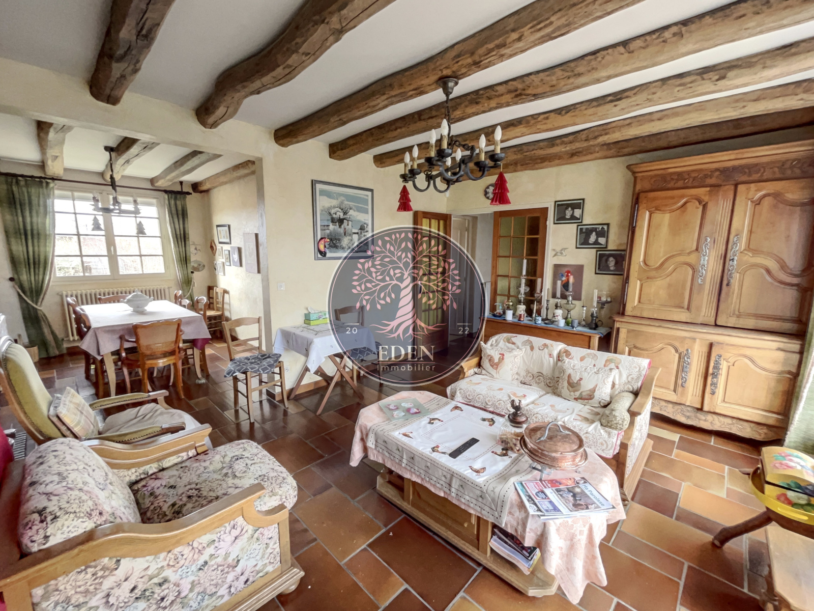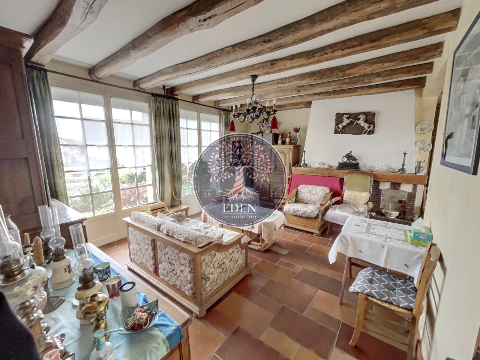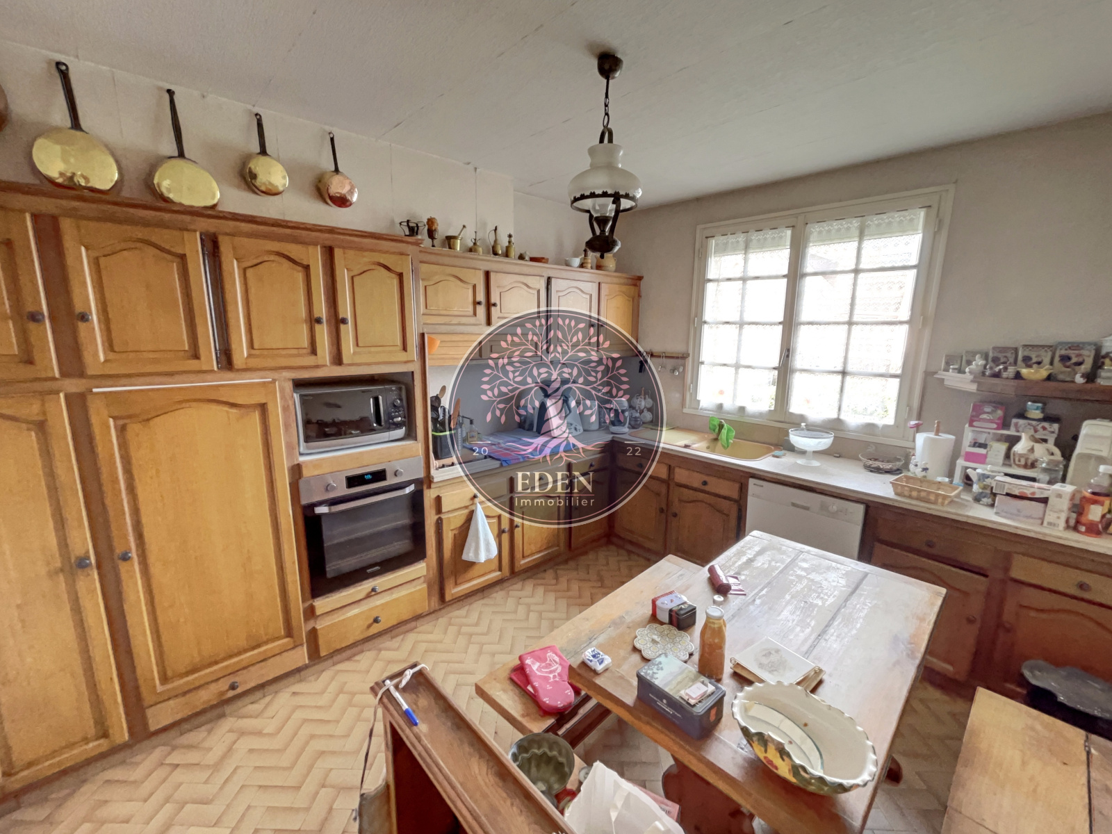 Entrée, Séjour Double avec Cheminée, 2 Chambres, Cuisine aménagée et équipée, Salle d'eau, wc. À l'étage : Palier, 2 Chambres, Salle d'eau et Wc.