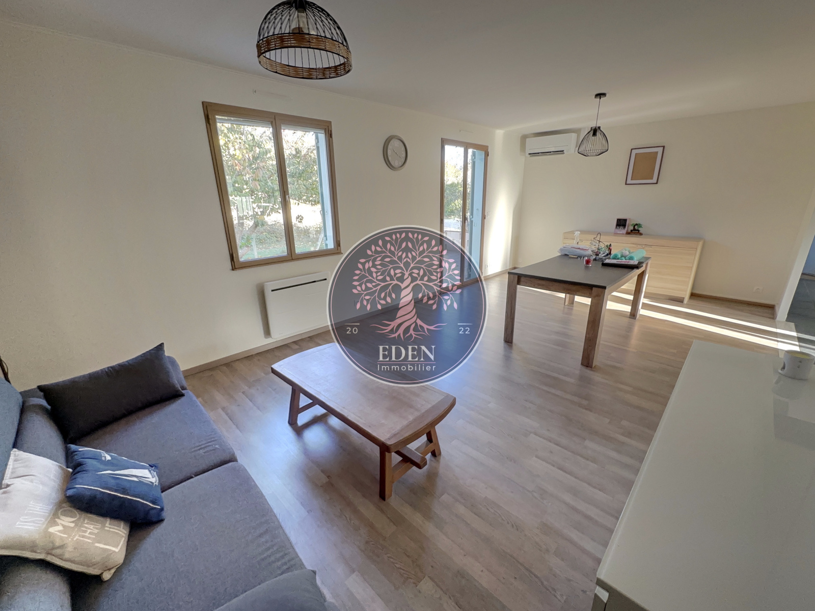 L'équipe Eden Immobilier vous présente cette maison de plain pied édifiée sur 1 000m² de terrain comprenant : entrée sur cuisine aménagée et équipée, salon/séjour, un dégagement desservant trois chambres, salle d'eau et WC.