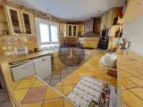 Entrée, Séjour Double, Cuisine aménagée et équipée, 3 chambres, salle d'eau avec Wc. Garage, Abri de Jardin