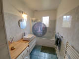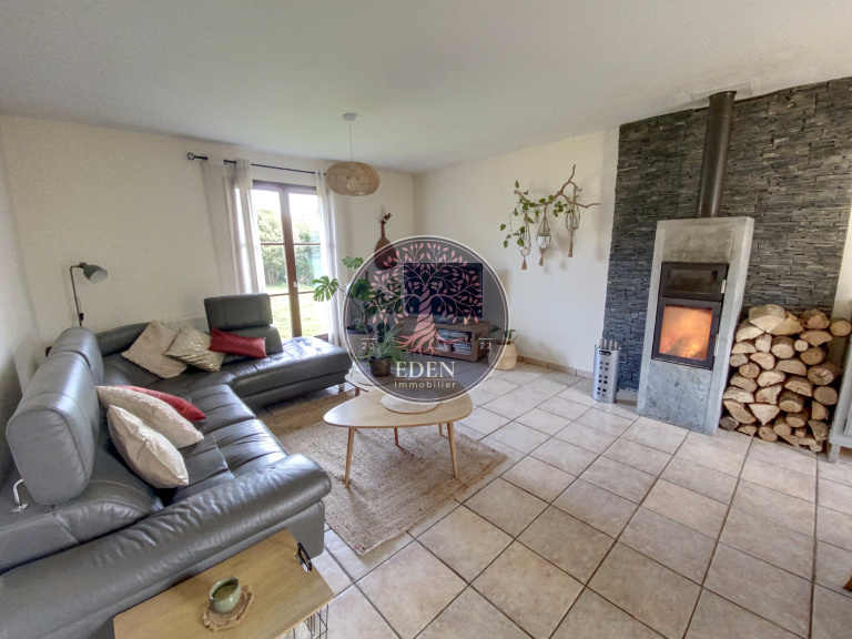 Maison d’environ 130 m² comprenant au rez-de-chaussée : entrée, séjour double, cuisine équipée, trois chambres, cellier, salle de bains, WC. A l'étage : deux chambres, salle d'eau, WC, grenier.