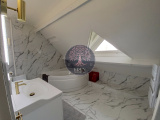 A l'étage : Palier avec dégagement, 3 chambres, salle de bains avec wc.