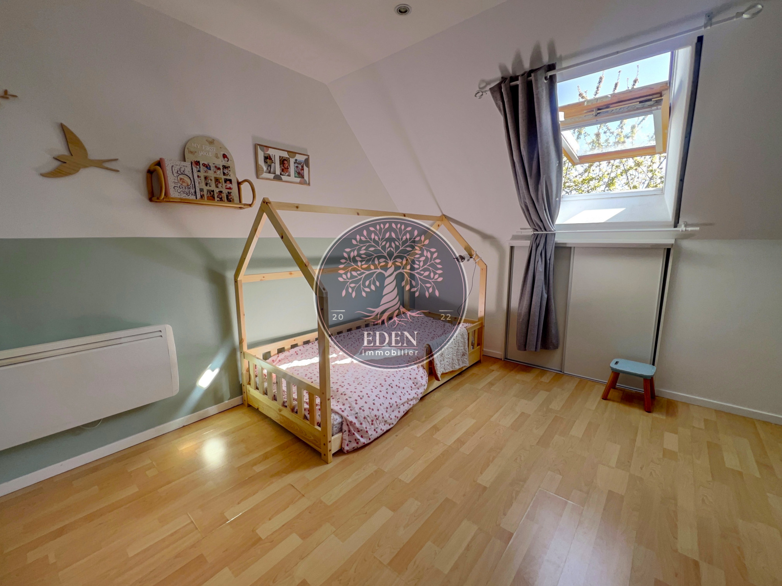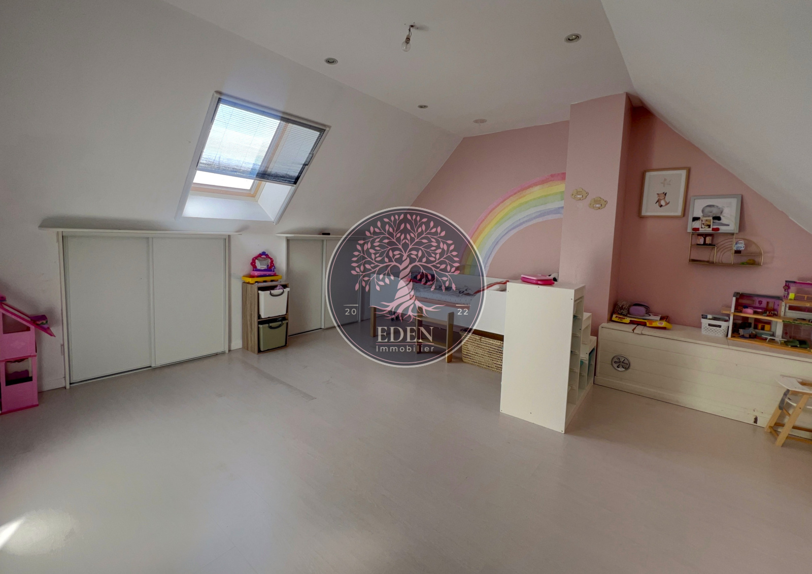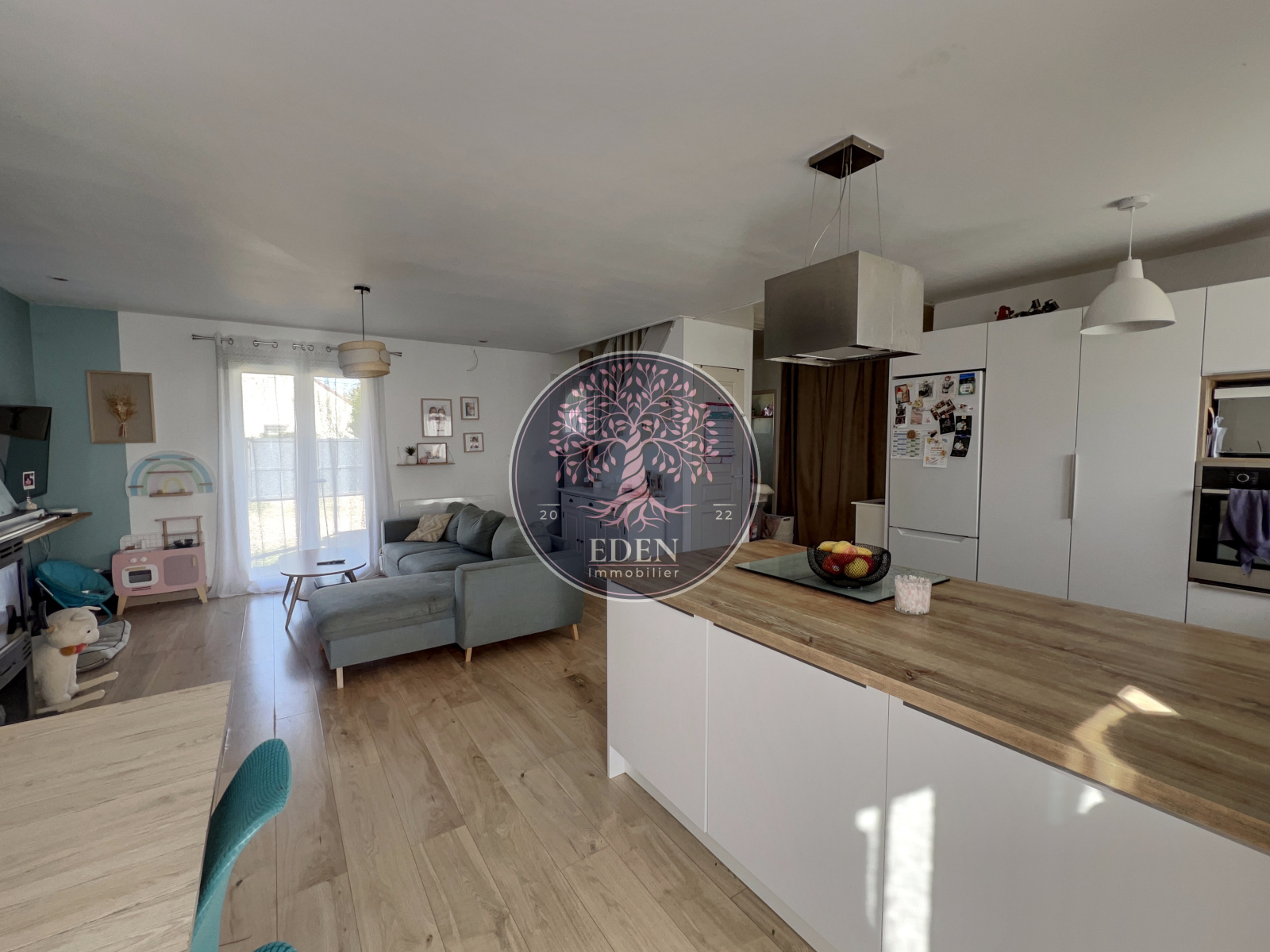 Maison d’environ 115 m² comprenant au rez-de-chaussée : entrée, séjour double, cuisine ouverte équipée, 2 chambres, salle de douche, WC. A l'étage : 2 chambres, dressing, salle de bains, WC, grenier.