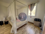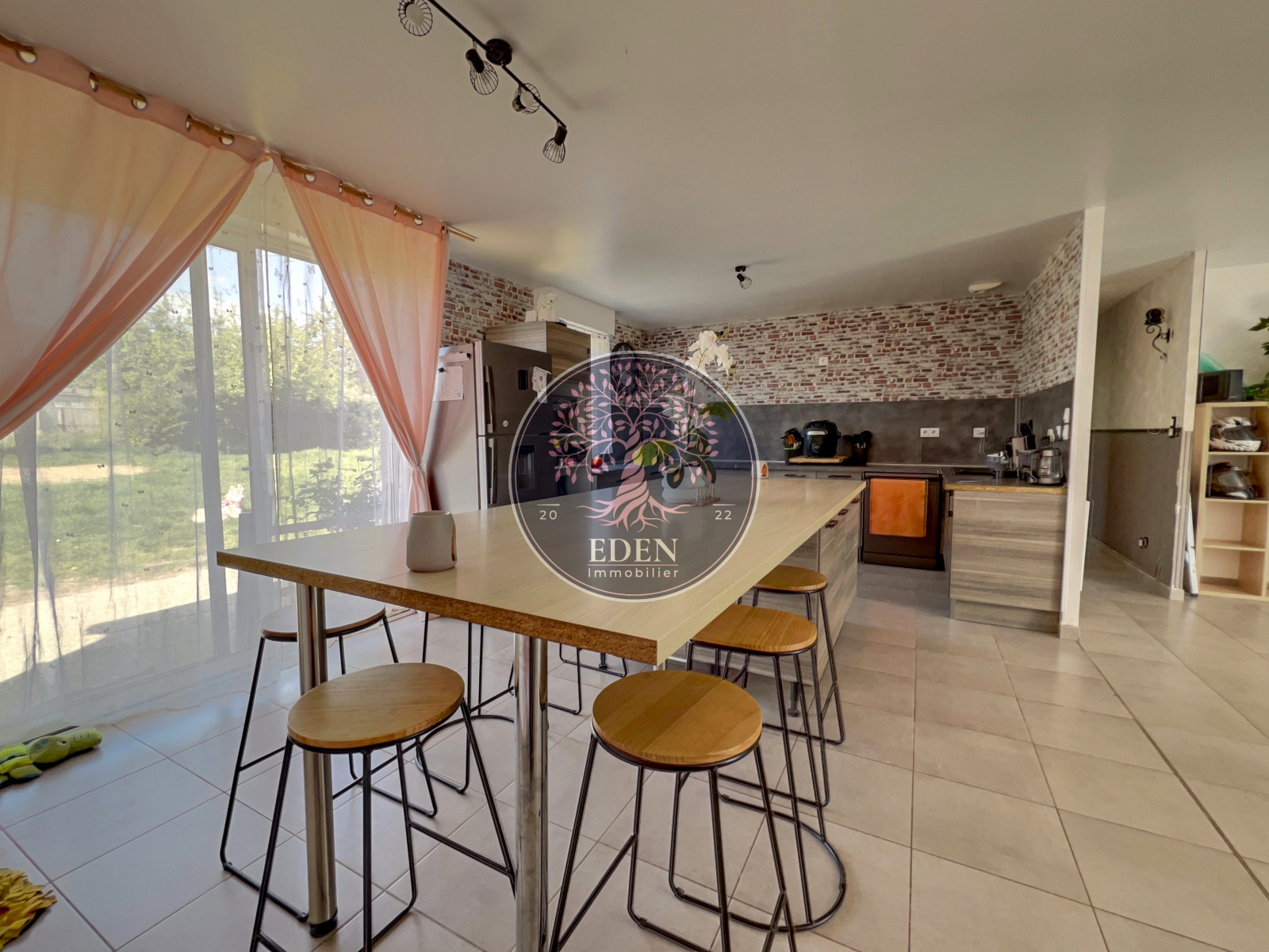 Maison d'environ 107 m² comprenant : séjour double avec cuisine ouverte aménagée et équipée, 4 chambres, salle de douche, WC , buanderie et atelier.