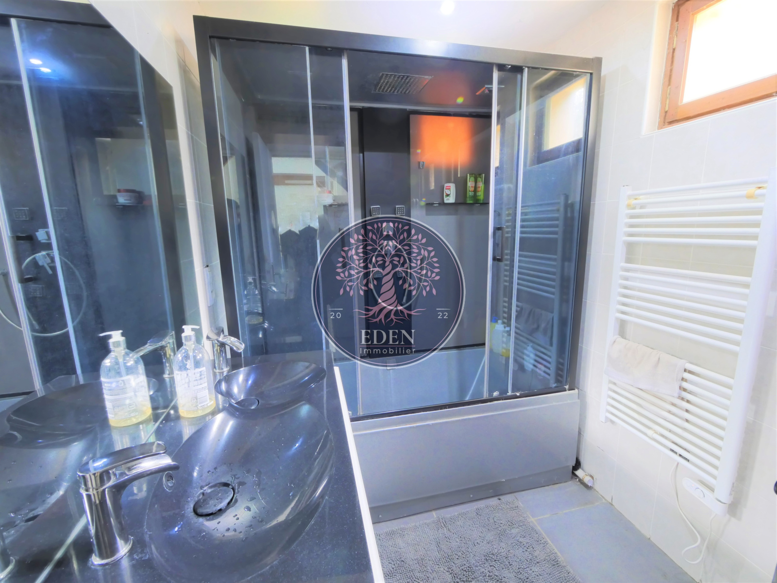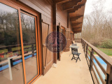 A l'étage : Un palier desservant deux chambres, un bureau, un WC et une grande pièce de 34 m² avec cheminée et accès au balcon.