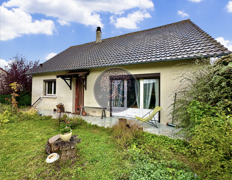 L'agence EDEN IMMOBILIER vous propose à la vente cette maison traditionnelle de plain-pied sur sous-sol total comprenant : Une entrée, une cuisine indépendante aménagée et équipée, un vaste et lumineux salon-séjour, un dégagement avec placard desservant deux grandes chambres, une salle d'eau et un WC indépendant.