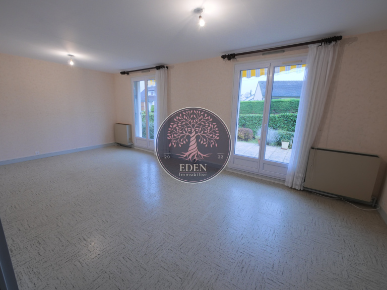 Entrée, dégagement, séjour/salon, cuisine aménagée, trois chambres, salle d'eau et WC.