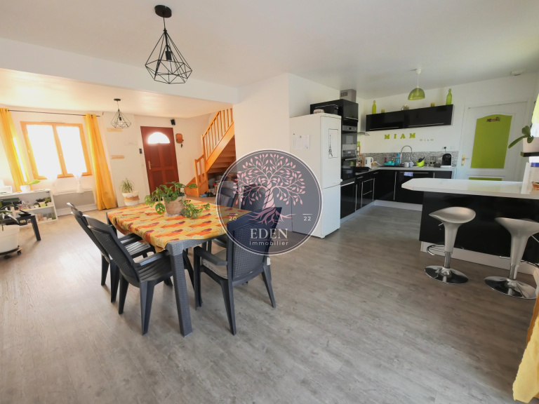 Maison récente sur 409 m² de terrain comprenant : Entrée sur salon-séjour, cuisine, cellier, chambre, salle d'eau avec wc.