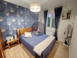 Entrée, Séjour Double avec insert à bois, Cuisine Aménagée et Equipée, Deux chambres, Bureau, Salle de Bains et Wc.