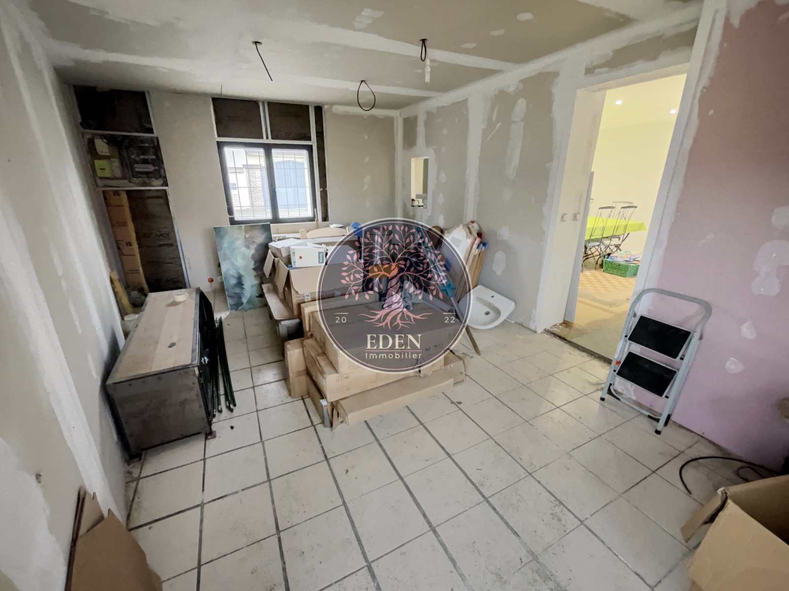 Entrée, cuisine, cellier, salon, 1 chambre et une salle d'eau avec WC et combles aménageables.