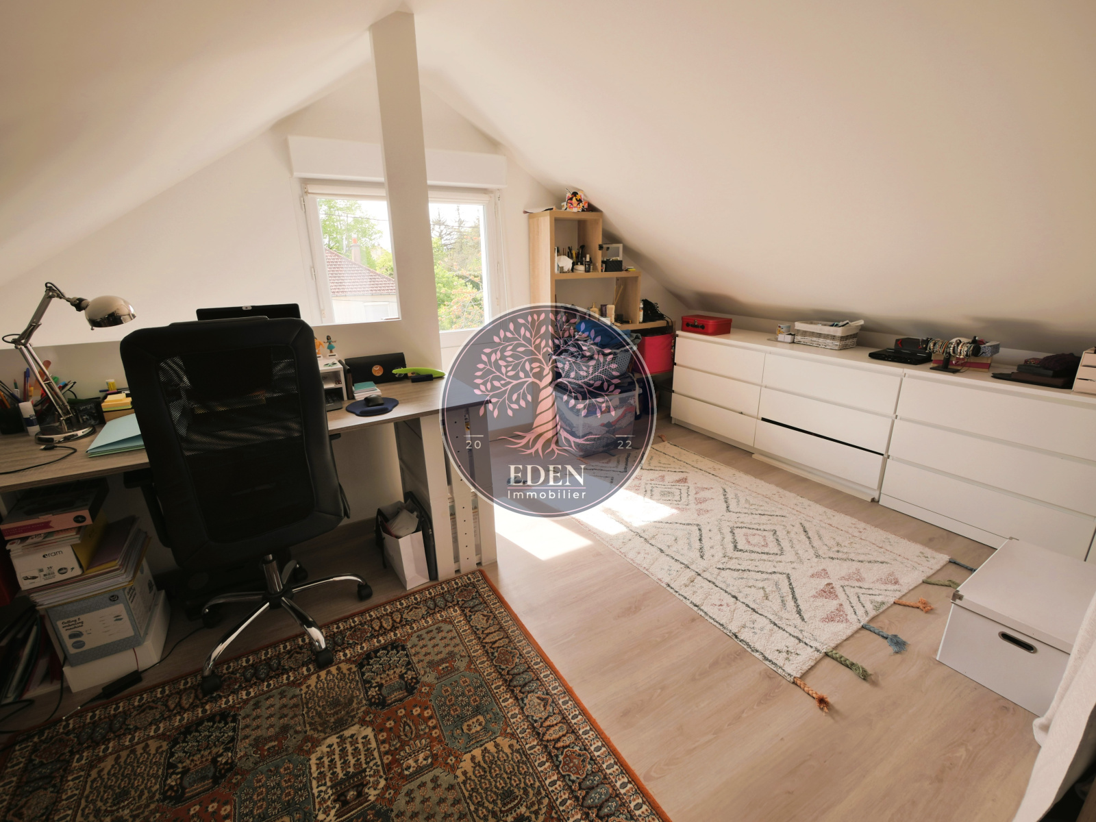 L'étage : Une grande pièce aménagé comprenant un espace bureau et un espace chambre.