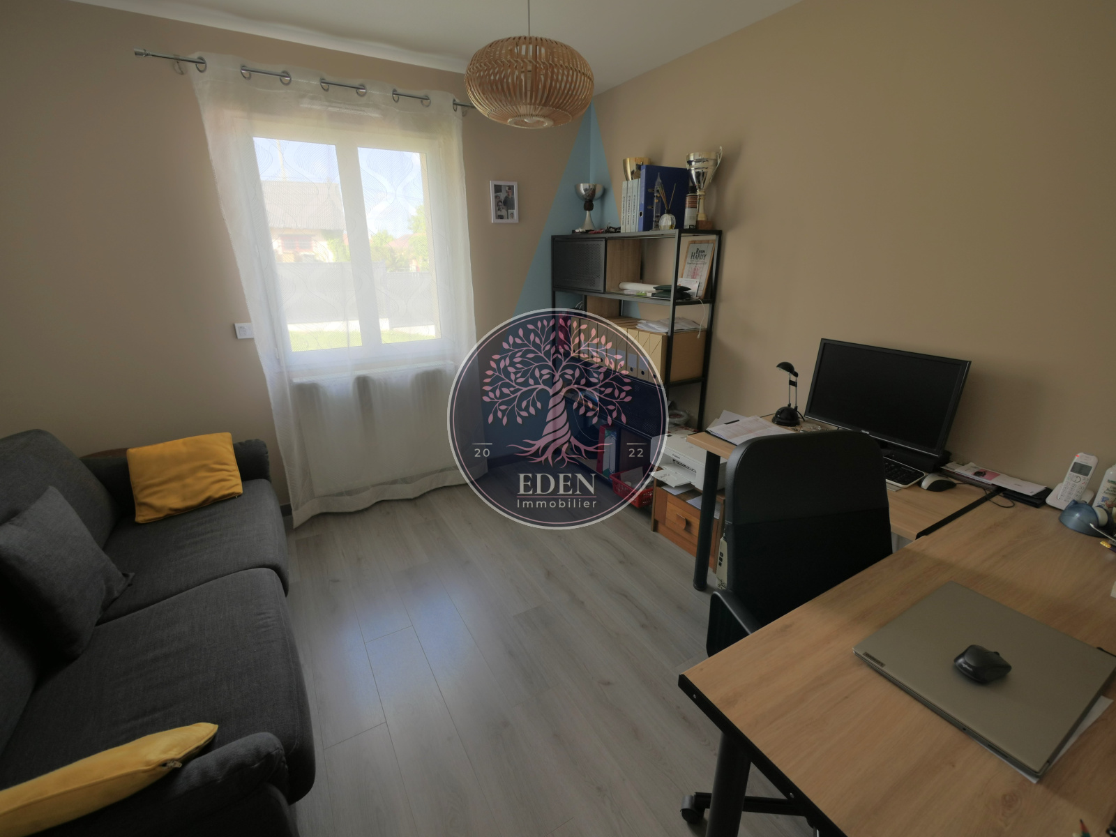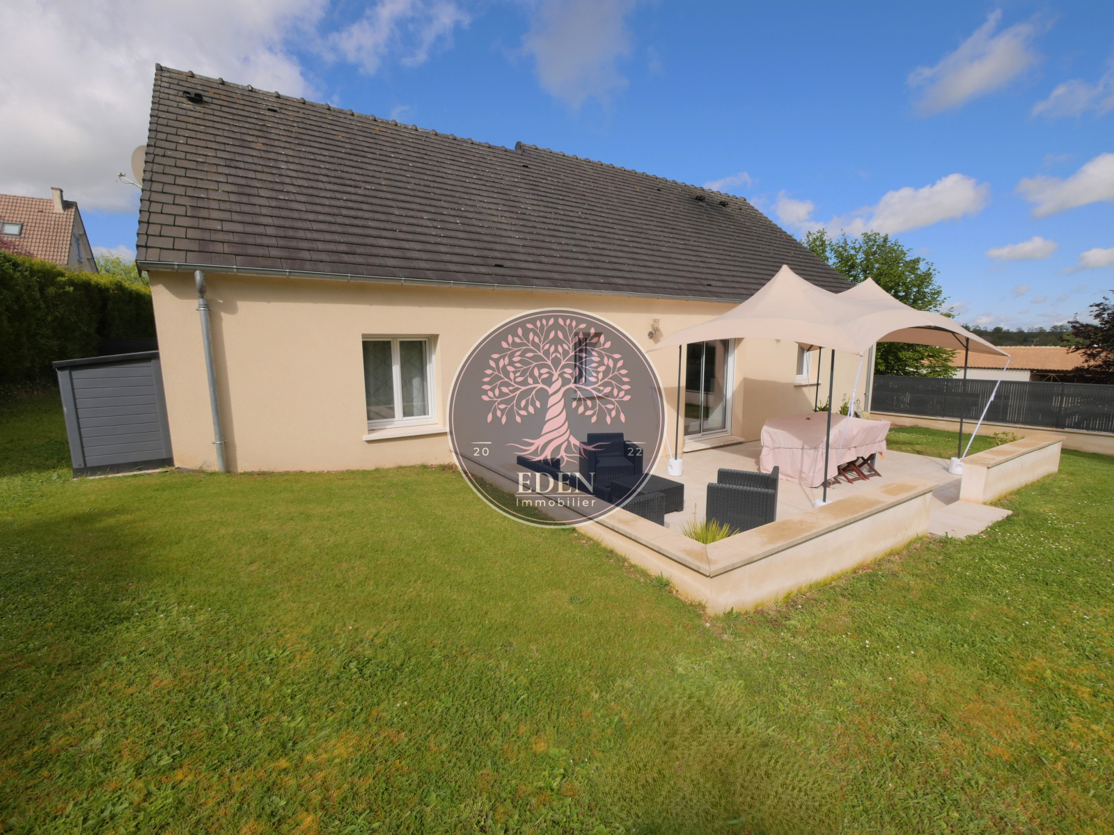 Située sur un secteur calme et recherché, écoles et commerces à pied. L'équipe Eden Immobilier vous présente cette maison de plain pied datant de 2012, édifiée sur 660m² de terrain environ comprenant : entrée sur salon/séjour, cuisine aménagée et équipée, buanderie, un dégagement avec placards desservant trois chambres, salle d'eau et WC. Garage. Double vitrage PVC, volets roulants et portail électriques. Contactez nous afin de visiter ce coin de paradis !