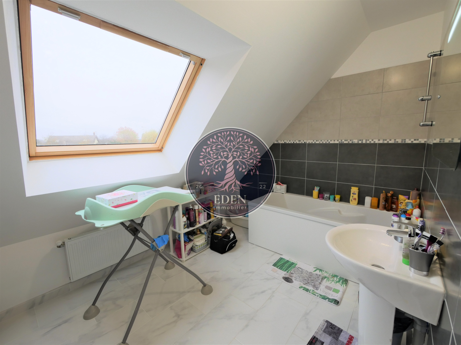 A l'étage : Palier + dégagement, 3 chambres, salle de bains, WC.