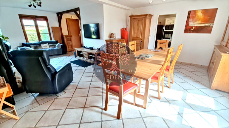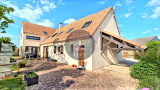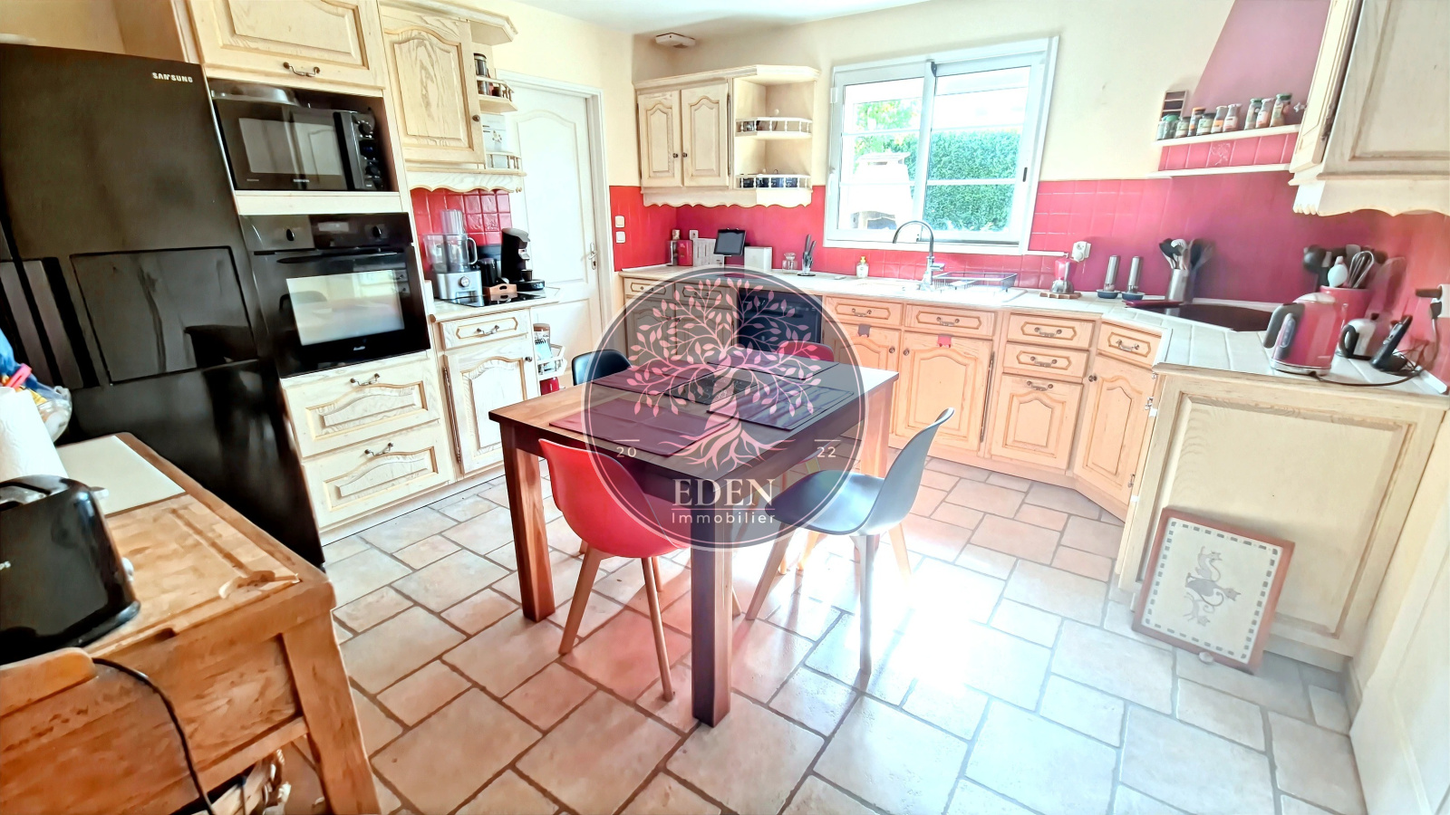 Maison individuelle de 280m² comprenant : entrée avec placards, séjour double de 36m² avec poêle à bois, cuisine équipée, cellier, salon de 60m² avec poêle à granules, chambre avec salle d'eau privative, wc avec lave mains.
