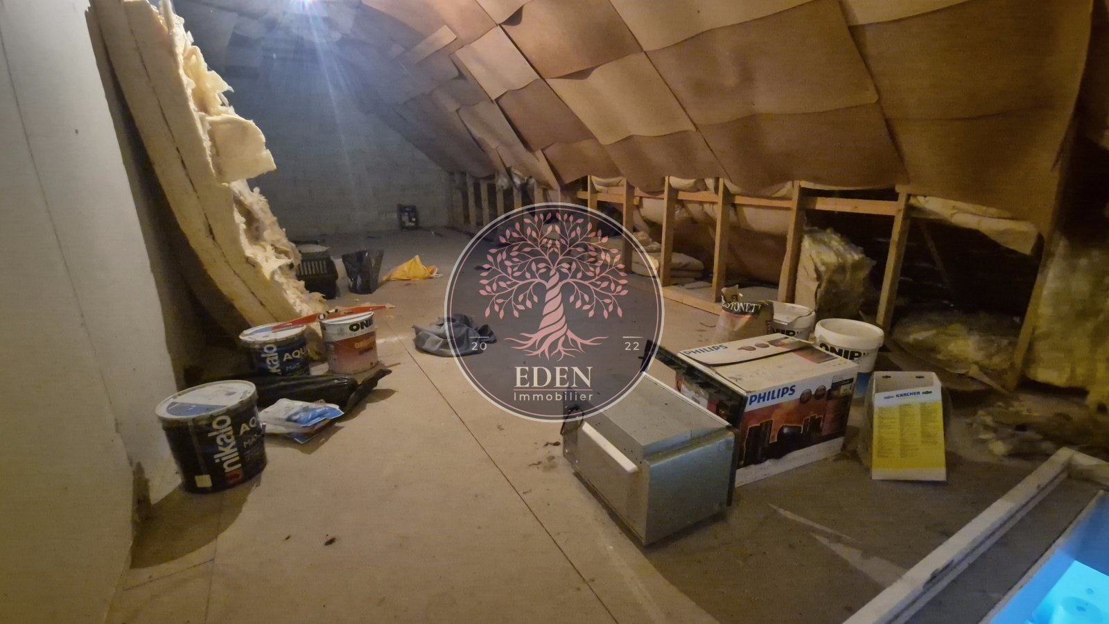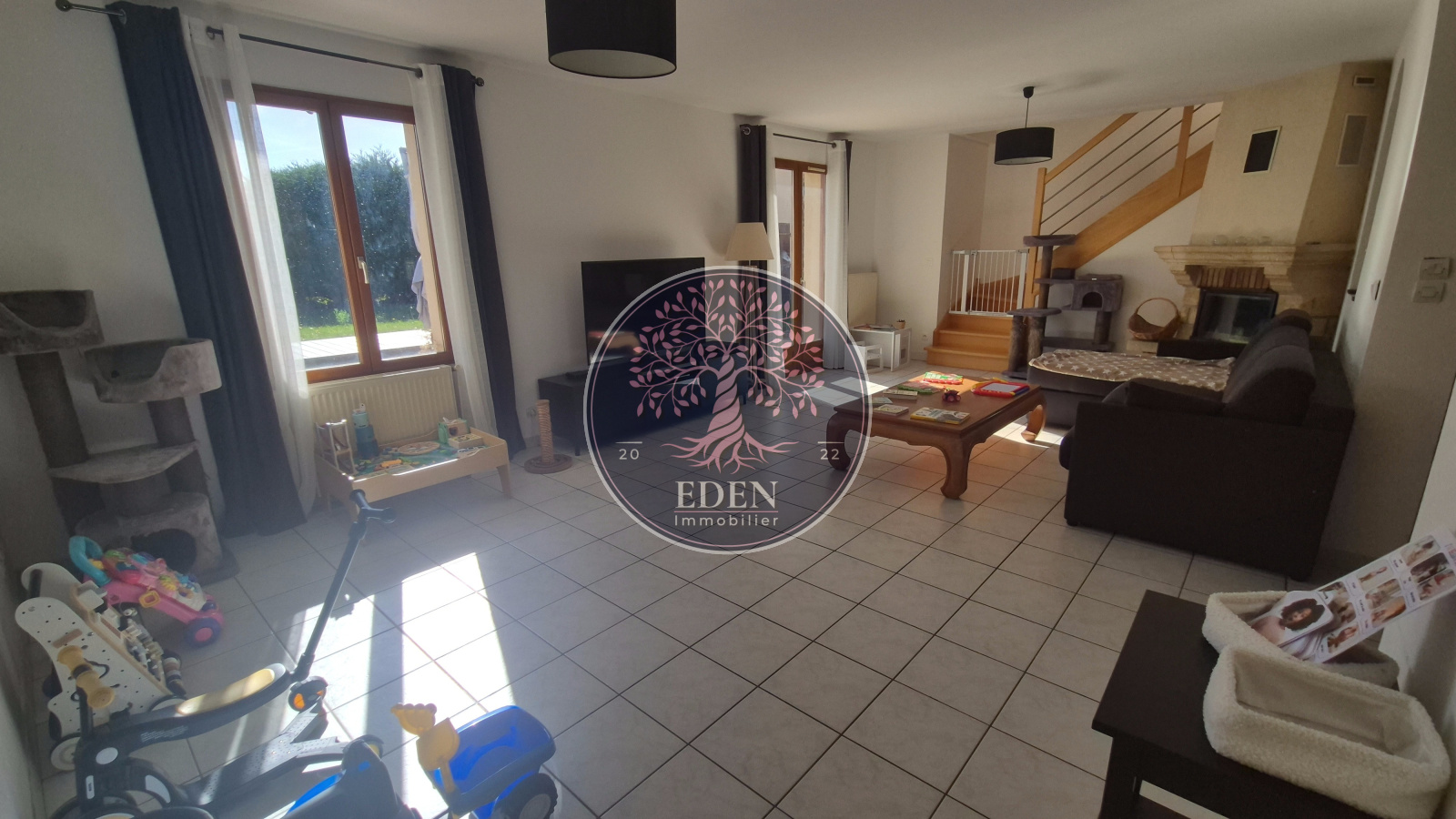 Maison individuelle de 1998 comprenant : cuisine avec salle à manger de 33m², séjour double de 30m² avec cheminée, buanderie, wc avec lave mains, salle de bains avec douche et baignoire, 4 chambres. A l'étage : palier, chambre de 20m², chambre de 27m² avec salle d'eau de 7m².