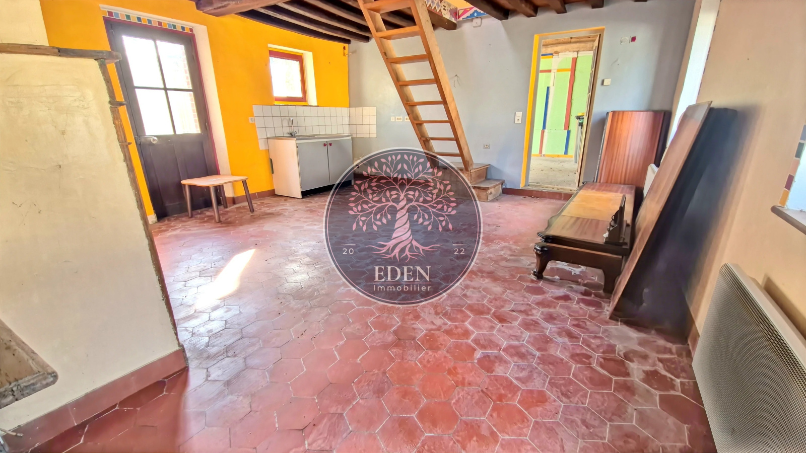 Maison exposé plein sud comprenant séjour avec cuisine, chambre, salle d'eau avec wc. A l'étage : palier, 2 chambres. Dépendance aménageable, garrage double motorisé, cave. Le tout édifié sur un terrain de 410m².