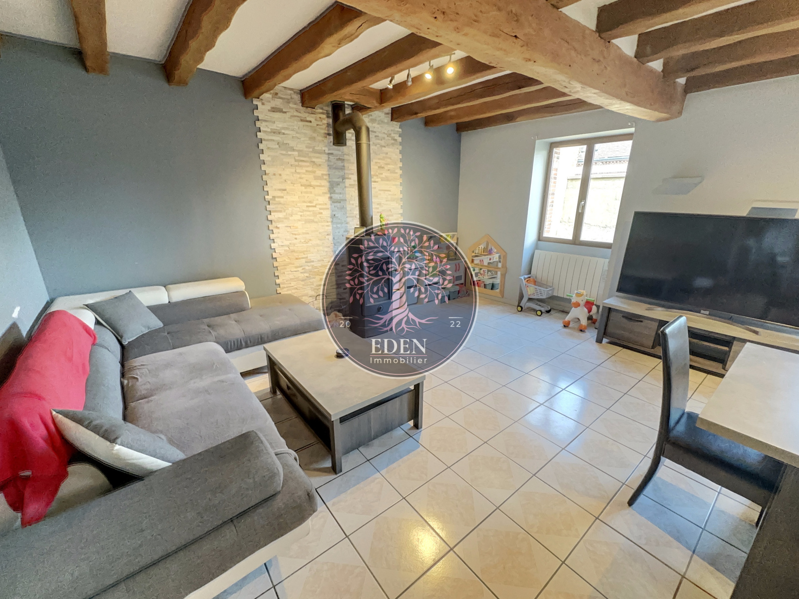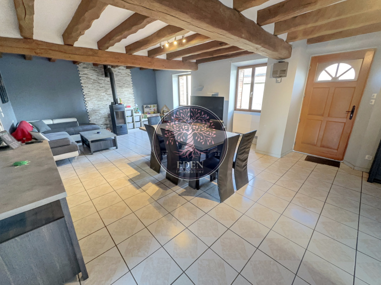 L'équipe Eden Immobilier vous présente cette longère édifiée sur 1 000m² de terrain environ comprenant : entrée sur un vaste salon/séjour avec cuisine aménagée et équipée, un cellier, une buanderie, deux chambres, salle de bains et WC.