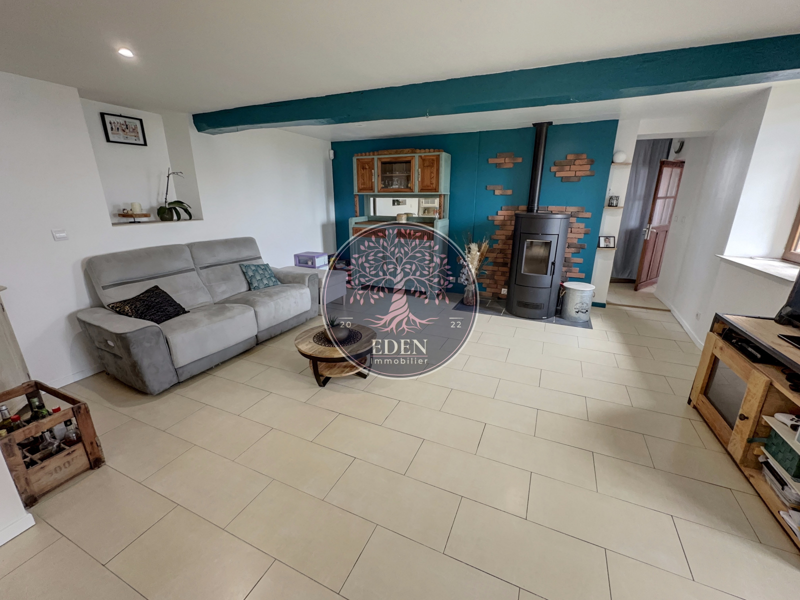 L'équipe Eden Immobilier vous présente cette longère édifiée sur 830m² composée de : entrée, salon-séjour, cuisine aménagée et équipée, une chambre avec dressing, salle d'eau et WC.