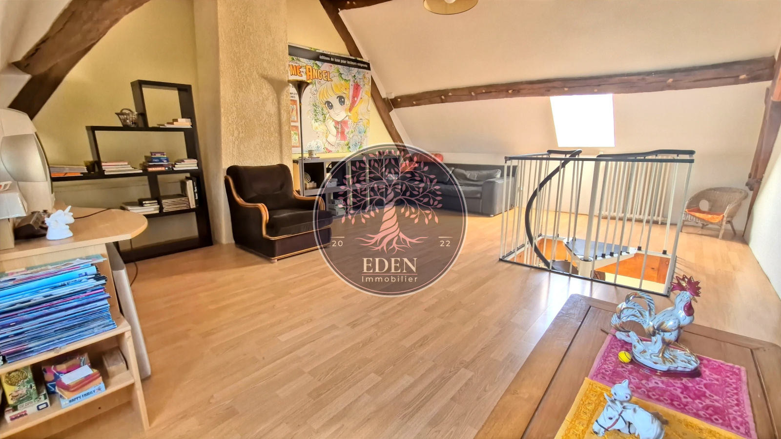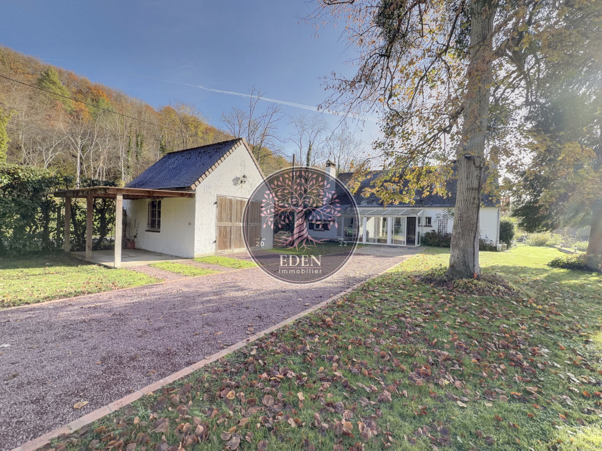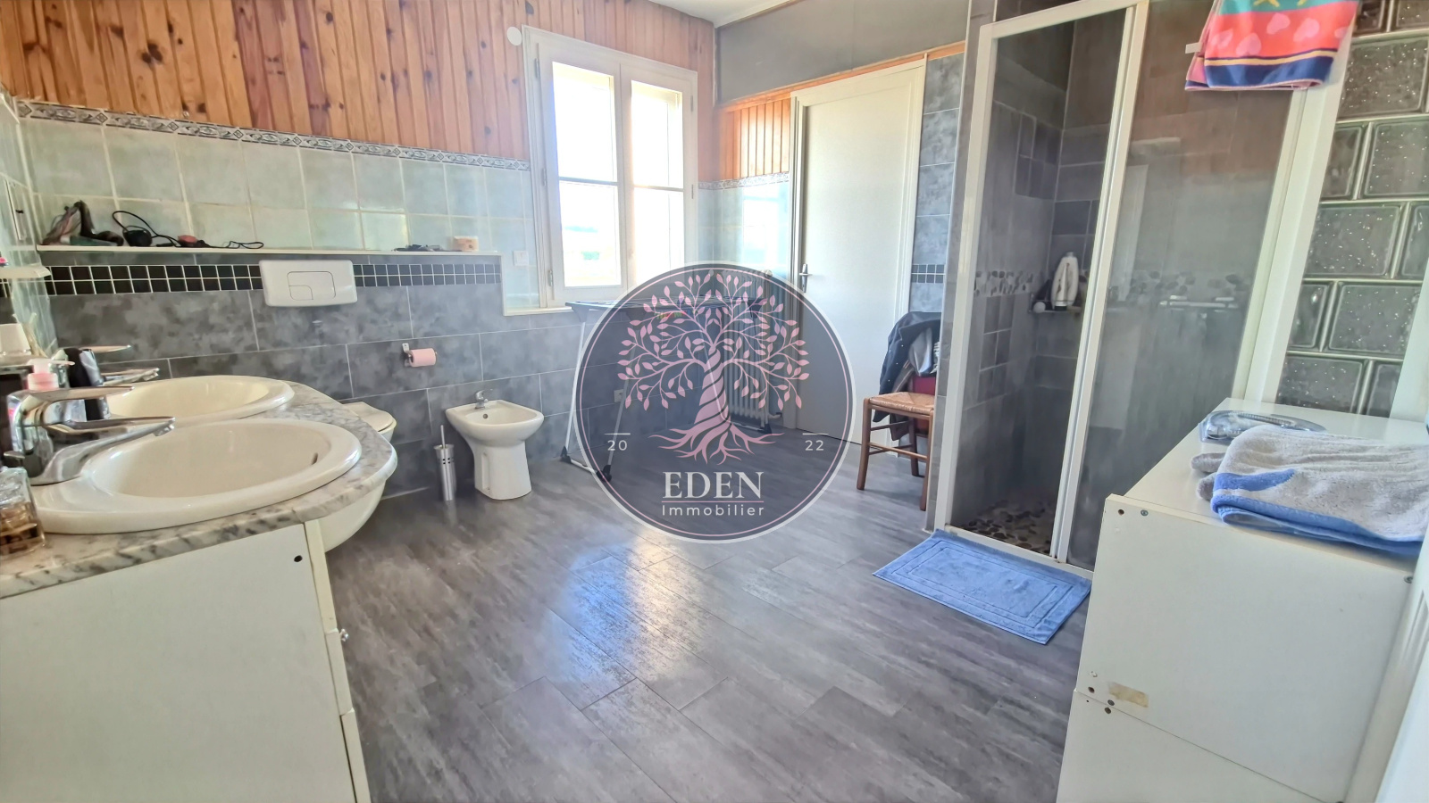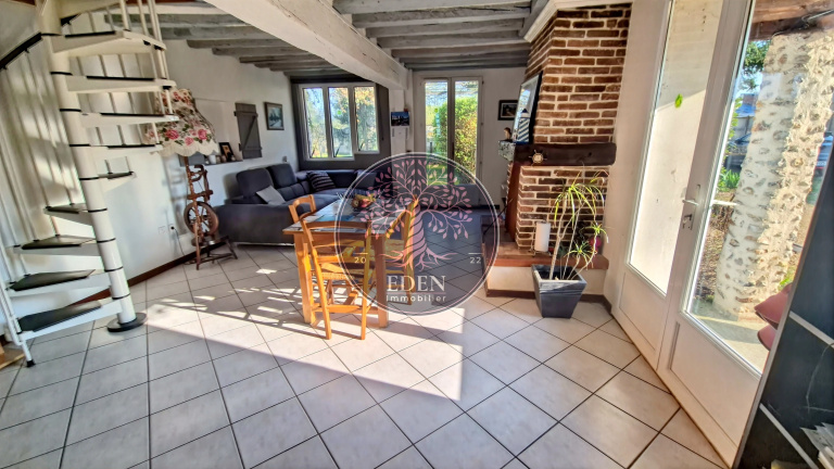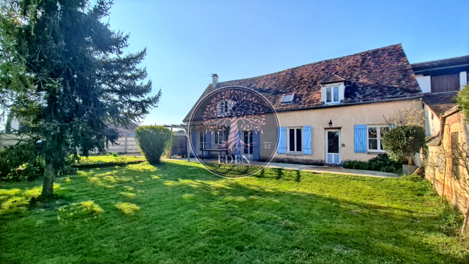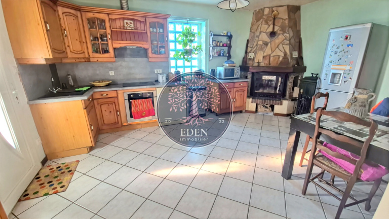 Maison de caractère comprenant, entrée, séjour double avec cheminée, cuisine avec cheminée, 3 chambres dont 1 avec salle d'eau, salle d'eau avec wc et buanderie, wc indépendant, chaufferie.