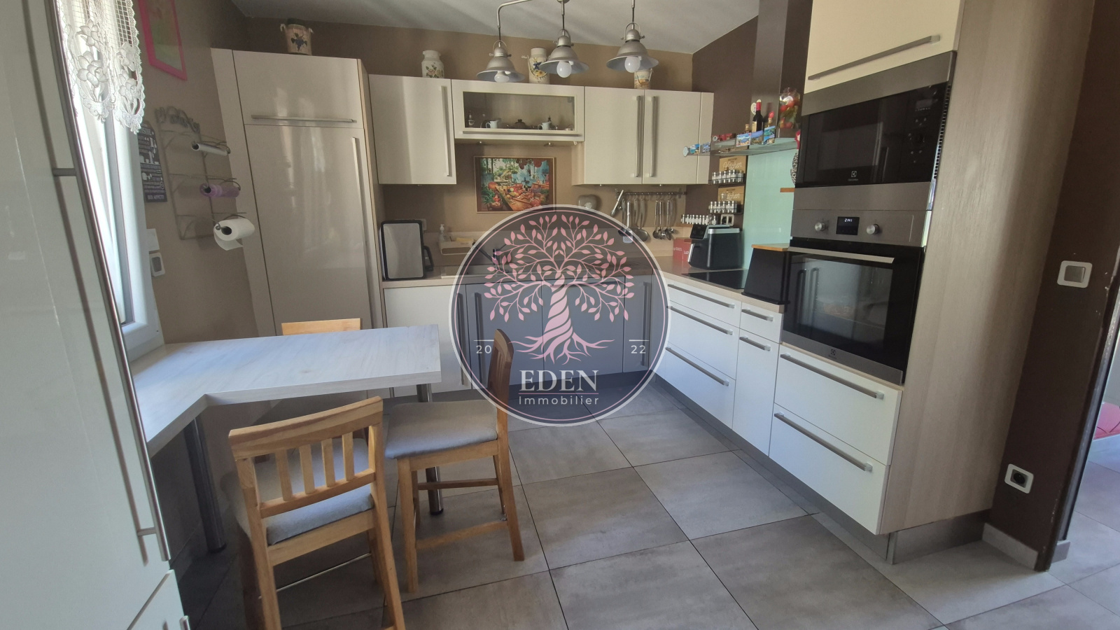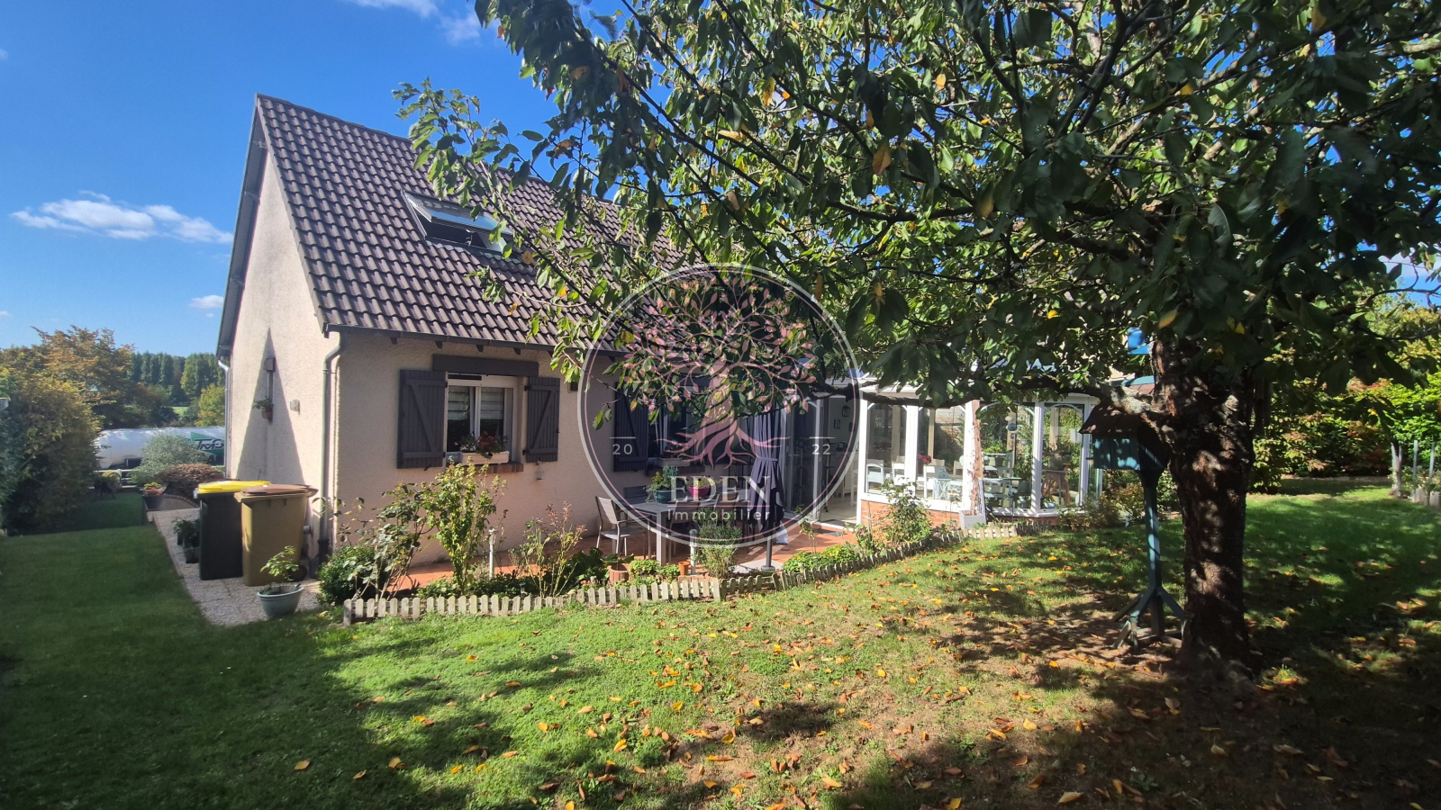 Maison individuelle comprenant : etrée sur séjour double de plus de 30m², véranda avec pompe à chaleur réversible de 20m², cuisine équipée, chambre de 13m², salle de bains avec baignoire et douche, wc séparé. A l'étage : palier : 2 grandes chambres de 18 et 20m², salle d'eau avec wc.