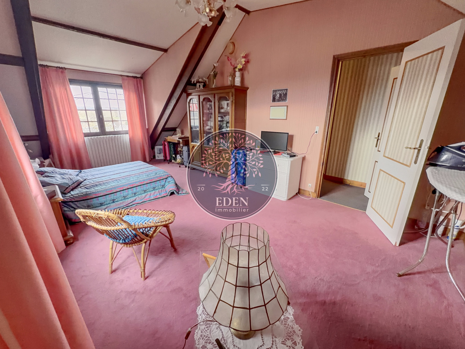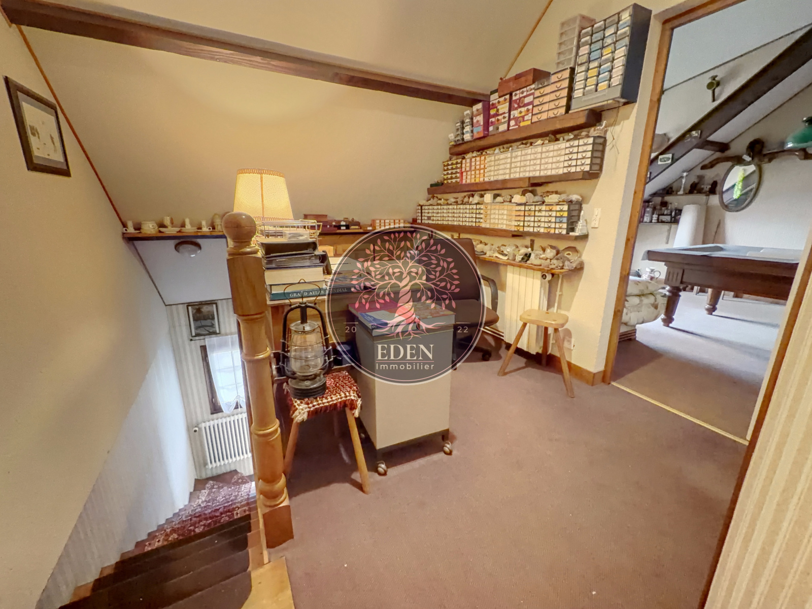 A l'étage : palier, 2 chambres de 25 et 22m², salle d'eau avec wc.