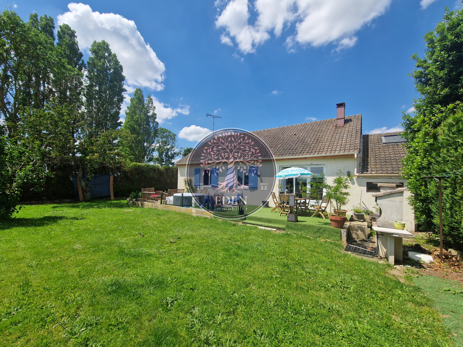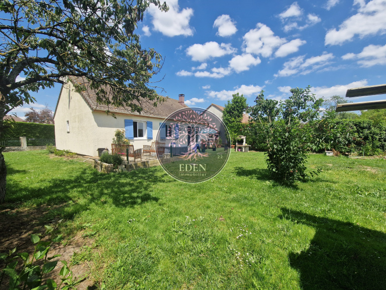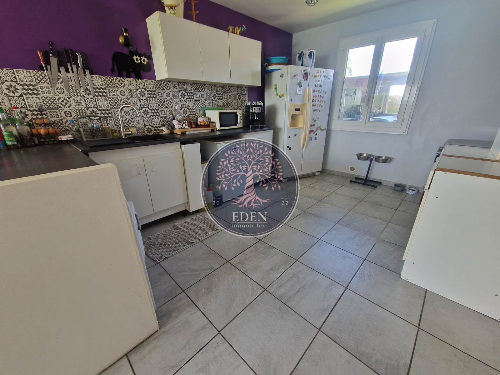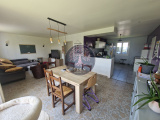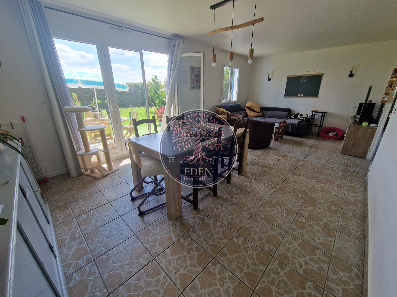 Maison de 1979 de pain pied comprenant : entrée, séjour double avec cuisine ouverte, 3 chambres, salle de bains, wc. Garage avec grenier.