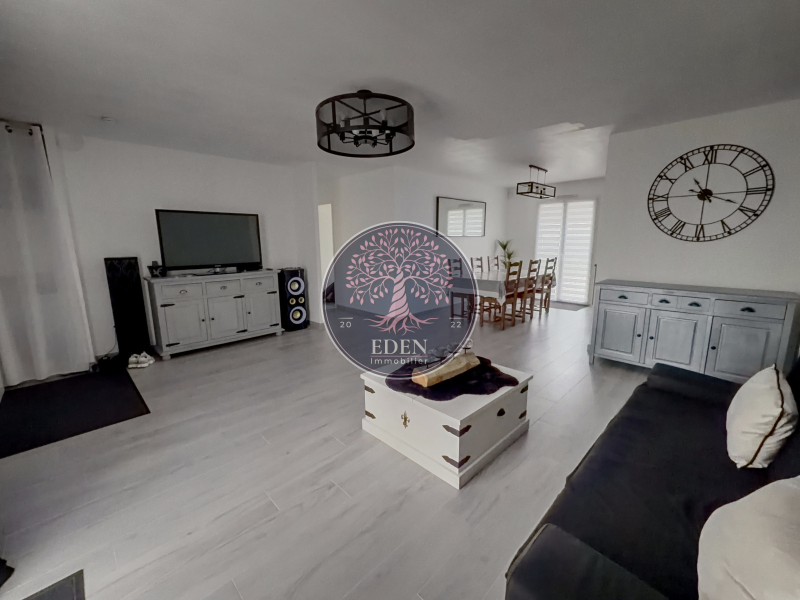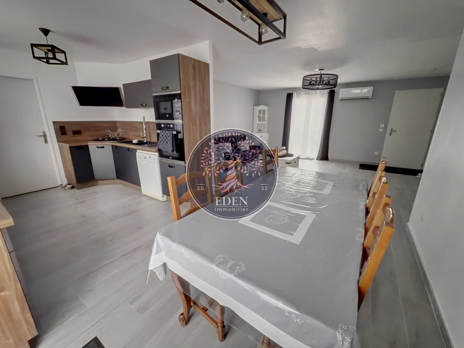 Maison de plain pied de 2020 comprenant : entrée sur séjour double avec cuisine équipée ouverte de 45m², cellier, 4 chambres, salle de bains, wc.