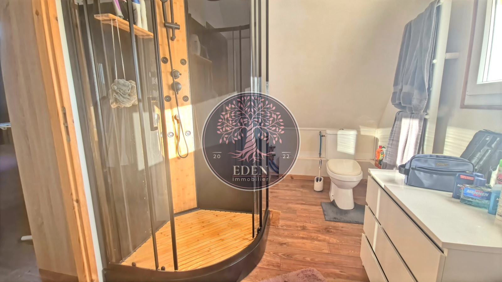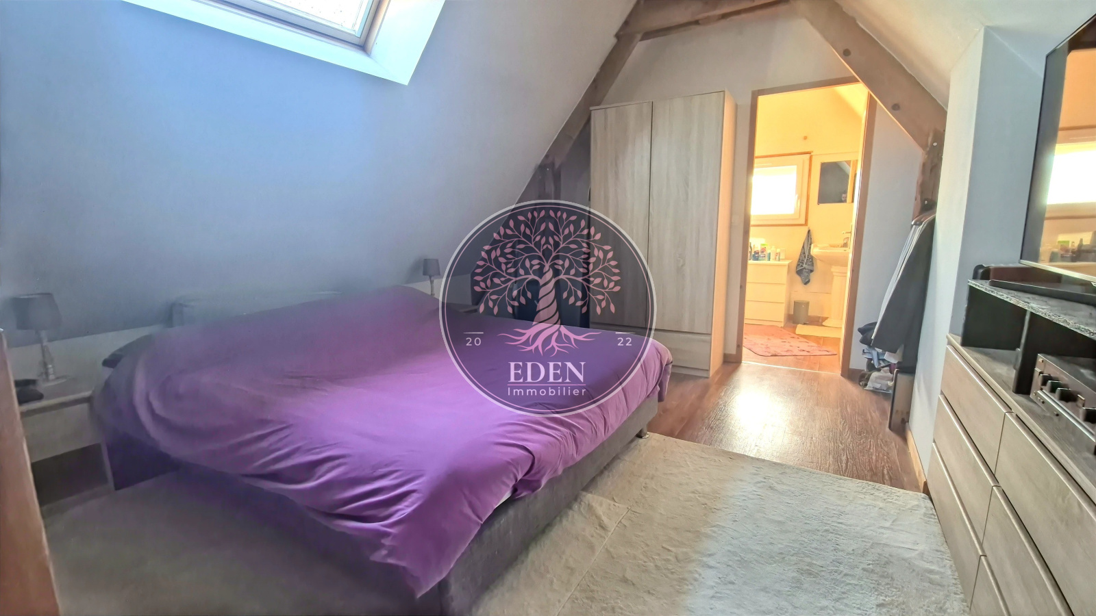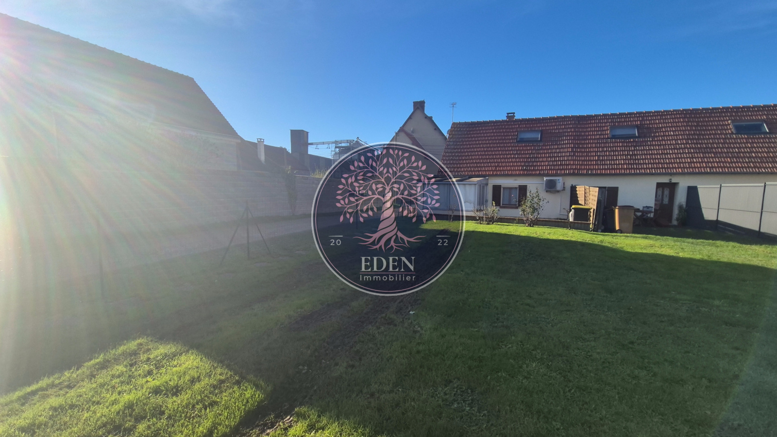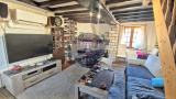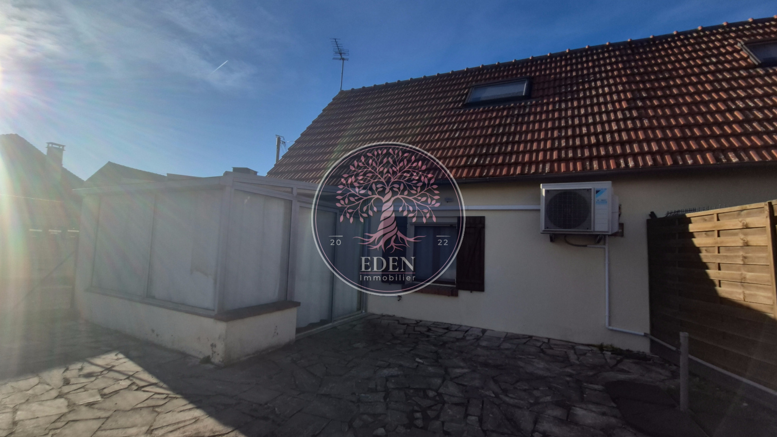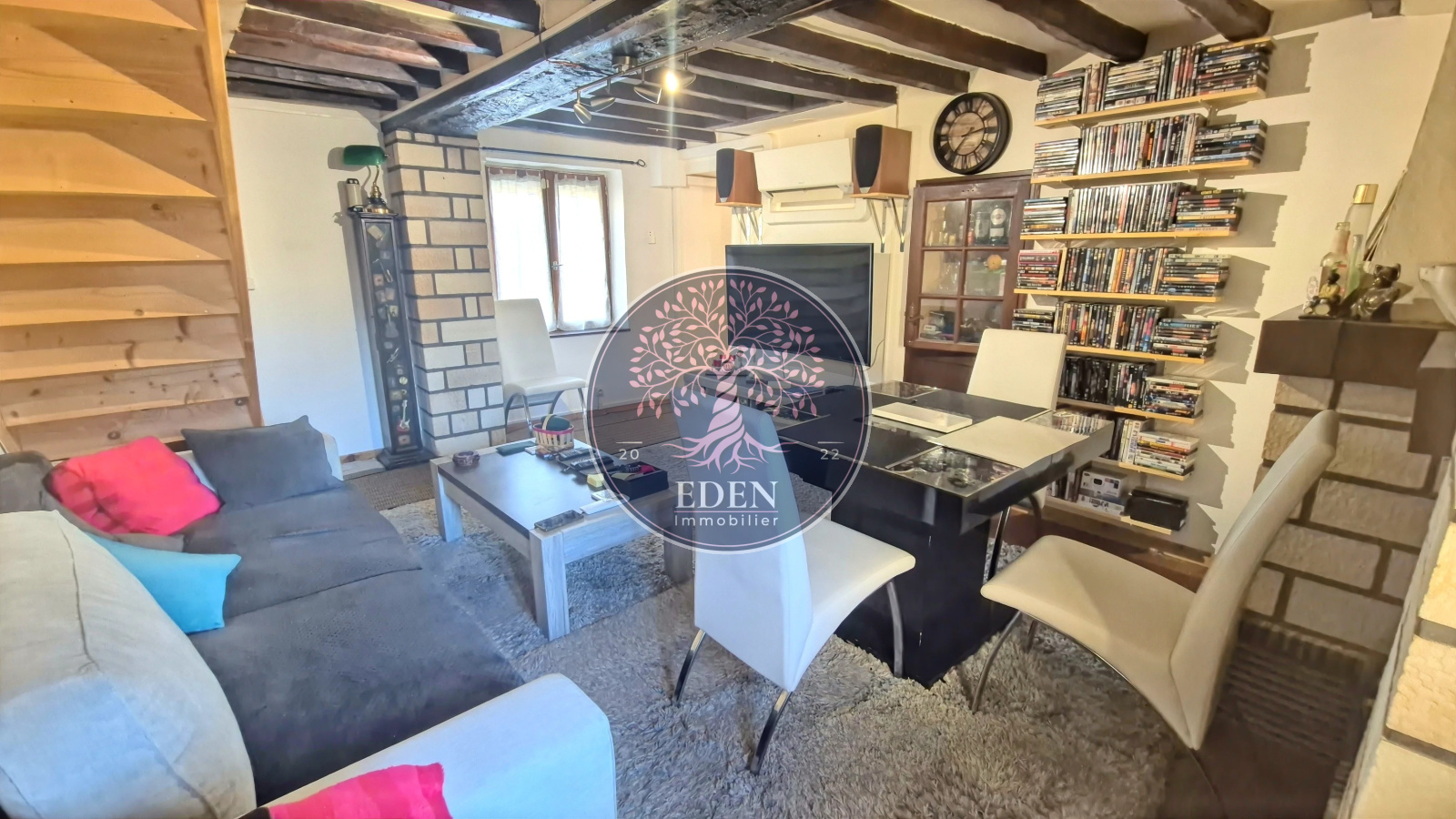 Maison comprenant véranda, entrée, cuisine équipée, salon de 19m² avec cheminée. A l'étage : chambre, salle d'eau avec wc. Jardin privatif d'environ 320m².