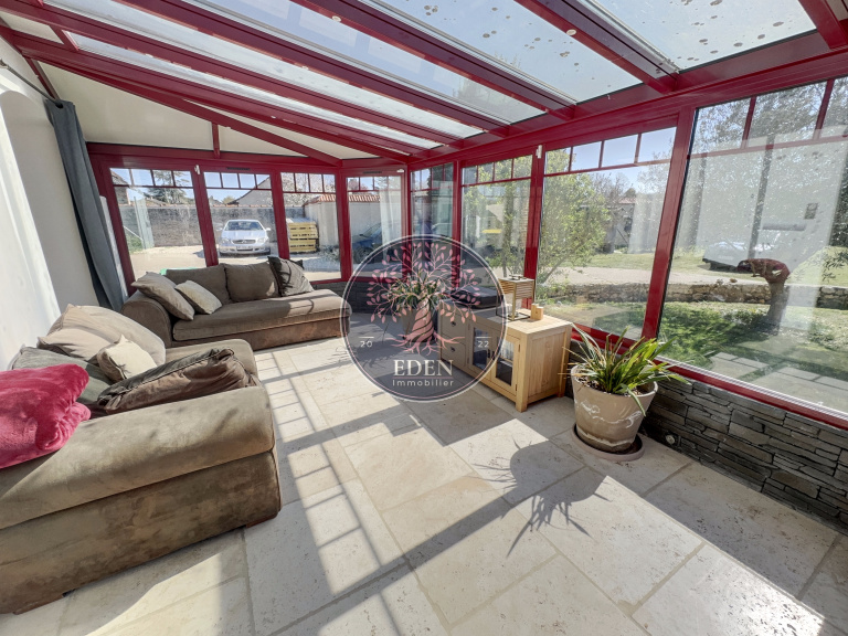 Au rez-de-chaussée: entrée, salon séjour double, cuisine aménagée et équipée, deux chambres, dressing, salle d'eau avec bain et WC, cellier, WC indépendant et pour finir la véranda qui apporte sa touche de claireté.